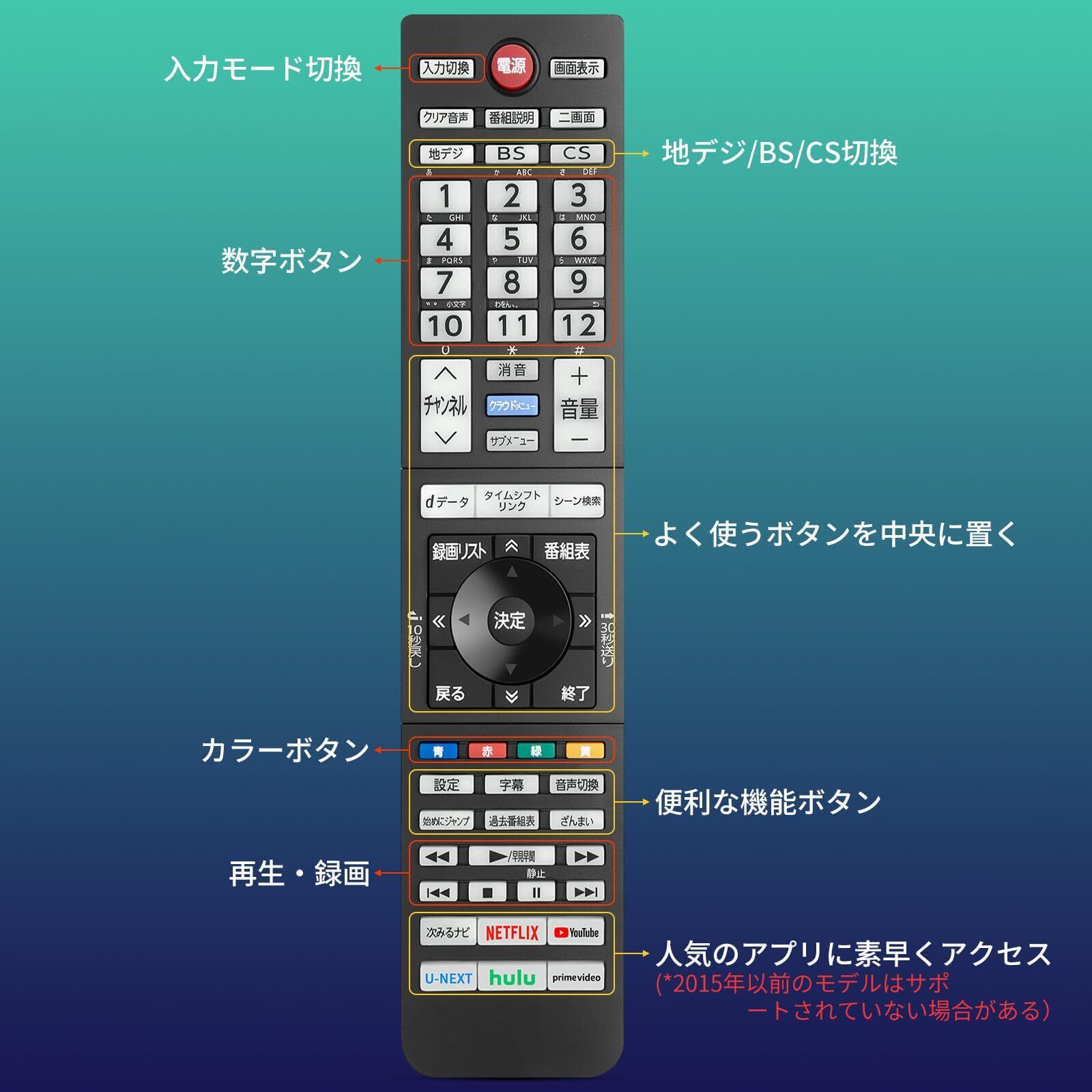 純正同様の代用リモコン:多数の東芝液晶テレビに対応する代用リモコンです;純正リモコンと同等の機能性を備えています。※201以前の機種ではお使い頂けない場合がございます
