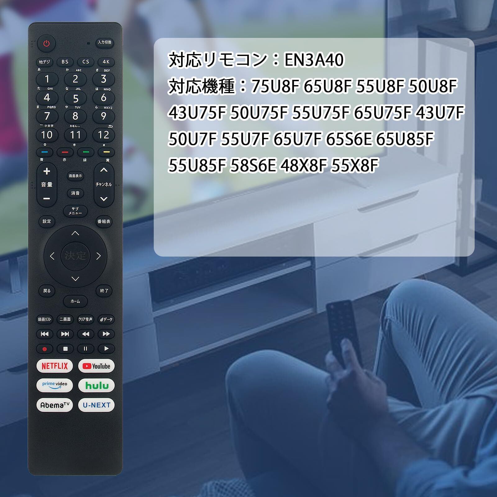 テレビ用リモコン EN3A40 fit for Hisense ハイセンス 75U8F 65U8F 55U8F 50U8F 43U75F 50U75F 55U75F 65U75F 43U7F 50U7F 55U7F 65U7F 65S6E 58S6E 48X8F 65U85F 55U85F 55X8F