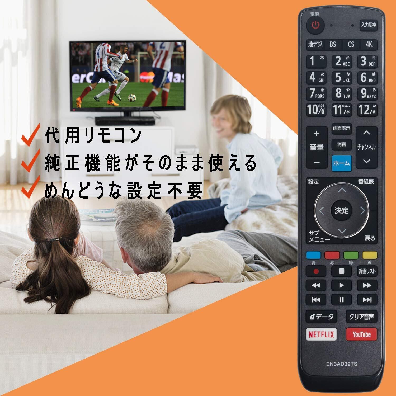 ①「代用リモコン」です。②純正リモコンに付いているのボタンが設置 されており、機能は全て使用できます。※ご注意:①このリモコンは「EN3AD39TSJ」の代用リモコンとして使用できます。 このリモコンは汎用リモコンではなく、他の型番の代用リモコンとして使用できないでございます。ご了承の上、ご購入ください。②このリモコンで操作する前に、アルカリ乾電池(新品)をご利用ください。③アフタサービス:ご購入した商品についてご不明点などございましたら、メールでご連絡下さい。弊店はカスタマーに対し、最高水準のカスタマーサービスを提供することをお約束します。(期間(1年)内に製品に故障が生じた場合は、返品若しくは返金の対応ができますのでご安心ください。)