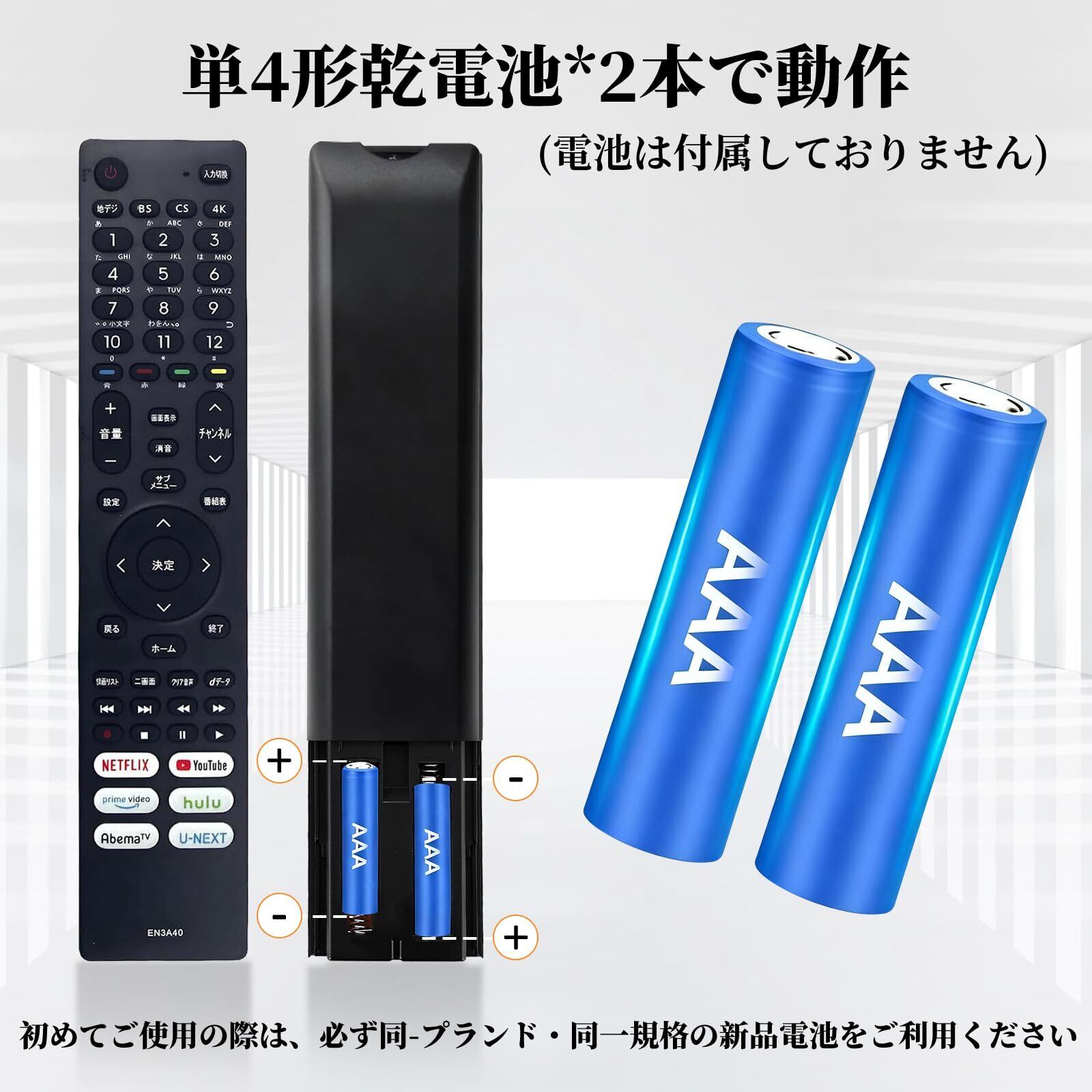 【操作設定が不要】このリモコンに電池を入れれば、設定する必要がなく、すぐに使えるので、特にお年寄りやお子様にはおすすめです。使い勝手もよく、交換後すぐに使用できます。この商品は純正リモコンの代替品ですが、オリジナルリモコンのすべての機能が正常に動作します。パッケージには説明書がありませんので、予めご了承ください。※単4形電池2本(別売)使用。