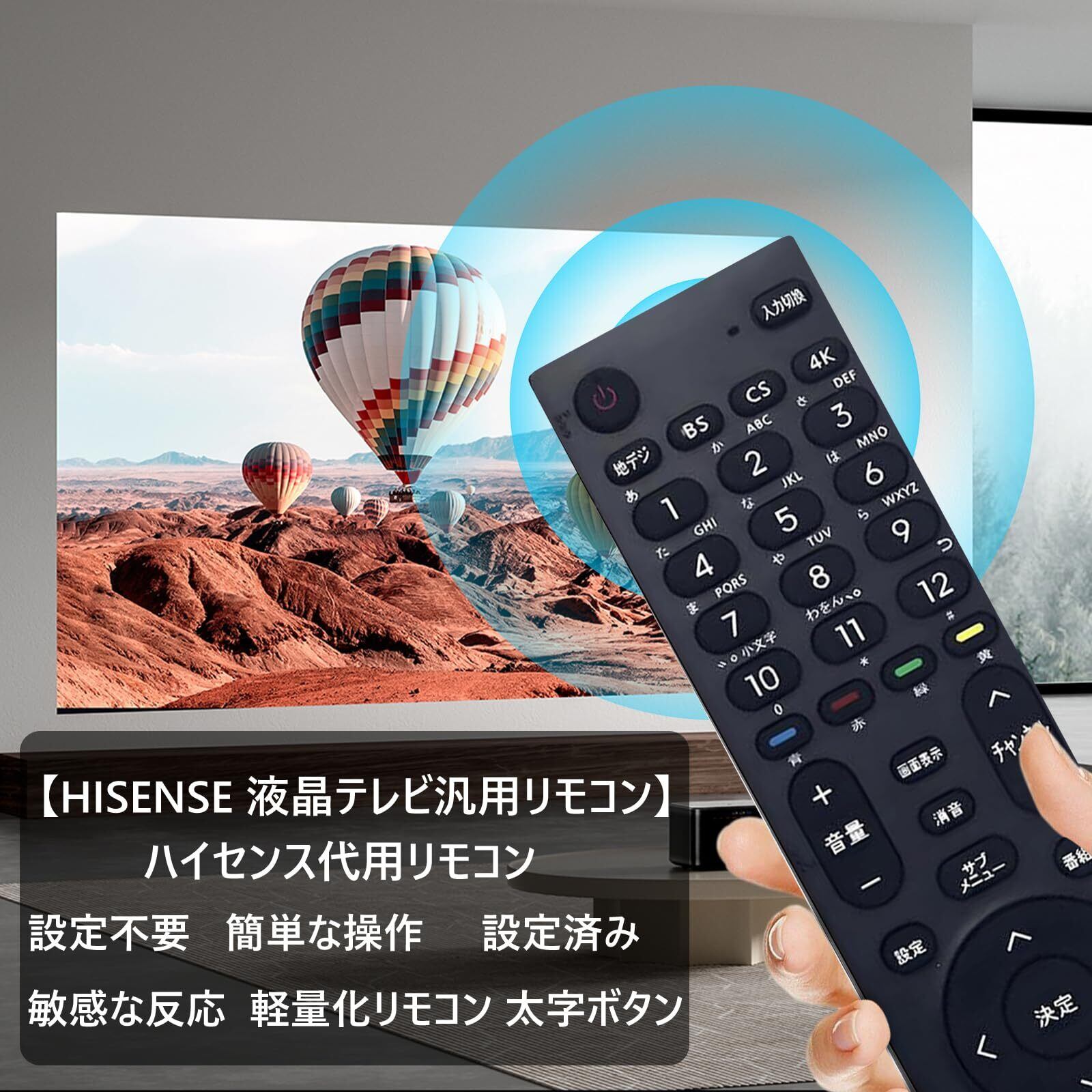【交換用リモコン】本製品はハイセンス Hisense 液晶テレビ専用の交換用リモコンです。高品質で環境に配慮したABS素材を採用しており、優れた耐久性を備えています。リモコンの紛失や反応不良などの際に、買い替え・交換・予備用としてご使用いただけます。※電池は同梱されておりません。