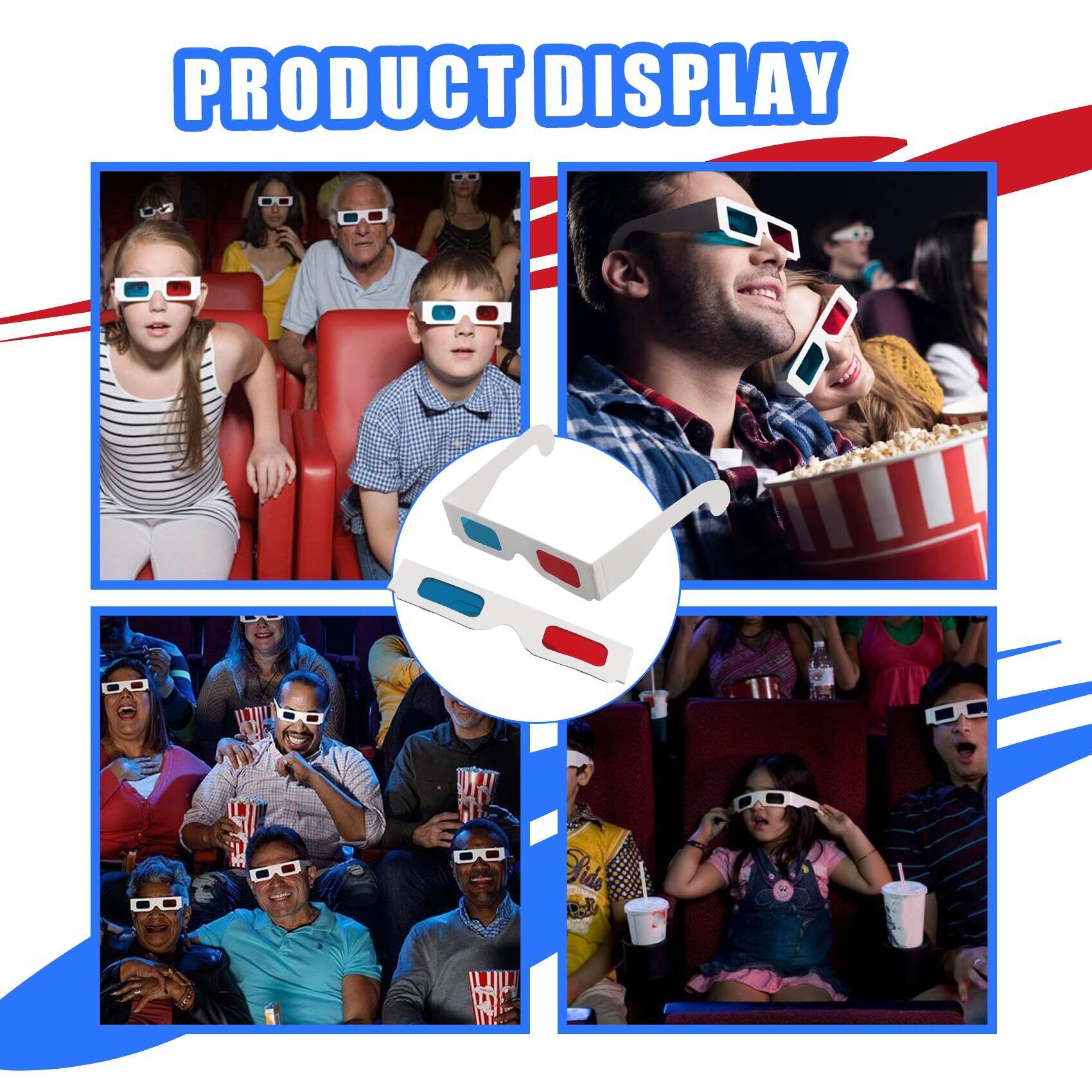 3Dメガネ、10ペアの赤と青の紙ステレオレンズ 映画用 セットアナグリフ紙の3Dメガネ