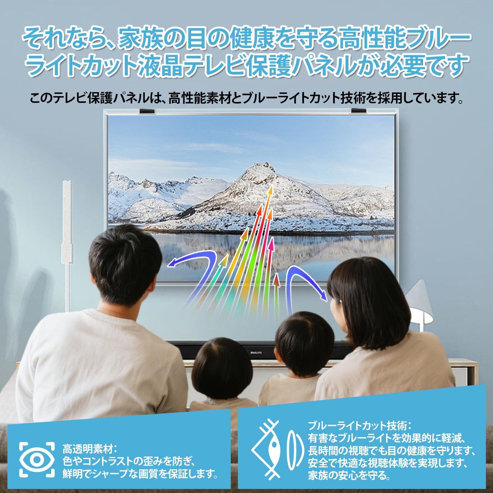 【高透明&ブルーライトカット技術で目に優しい視聴体験】この液晶TV保護パネルはブルーライトカット技術を採用しています。これにより、有害なブルーライトを最大50%軽減し、長時間の視聴でも目の疲れを軽減します。特に、家族の視力健康を守るために最適な設計です。さらに、高透明素材を使用しているため、画面にぴったりとフィットし、色やコントラストの歪みを防ぎます。鮮明でシャープな画質を実現し、大切な家族と一緒に、安全で快適な視聴体験をお楽しみください。