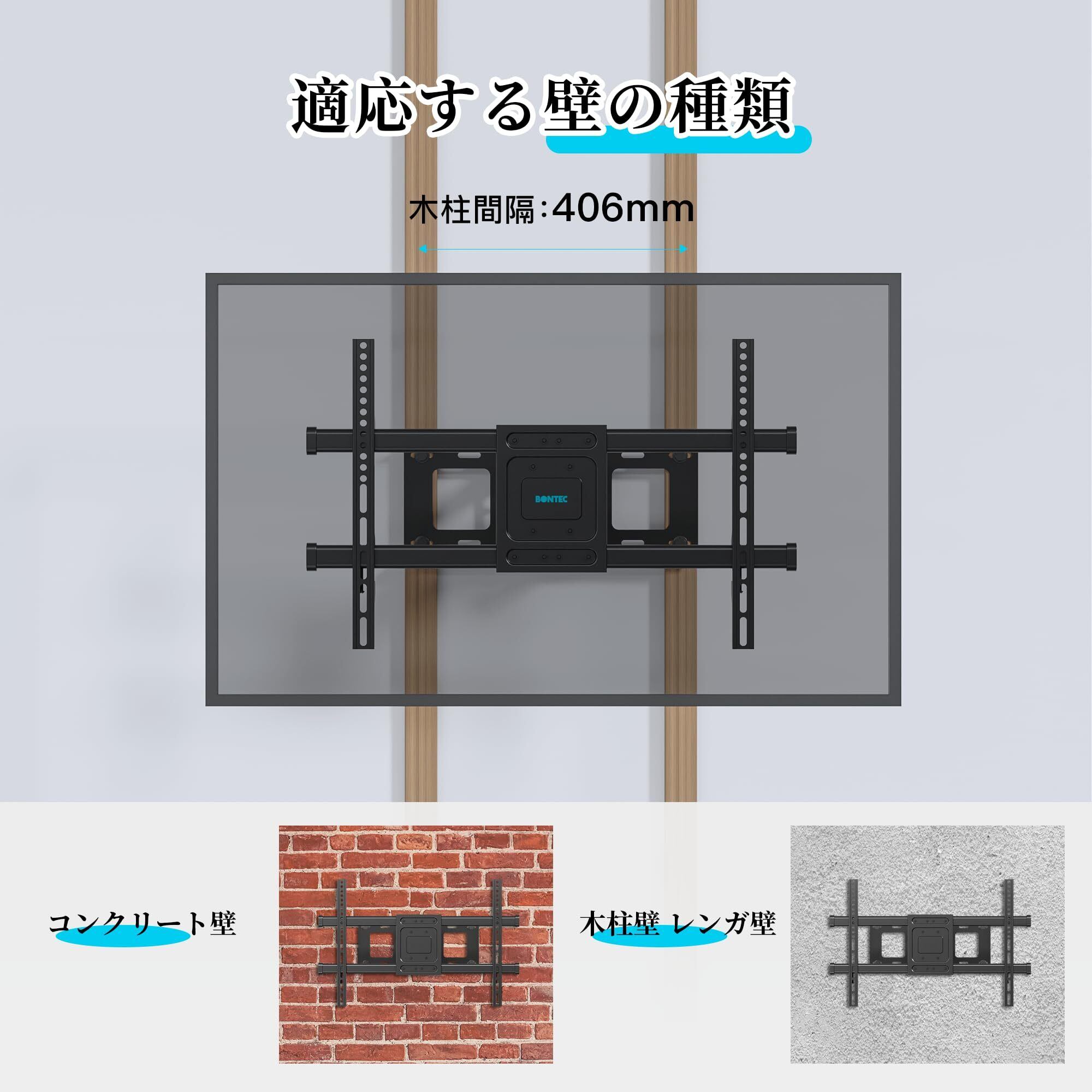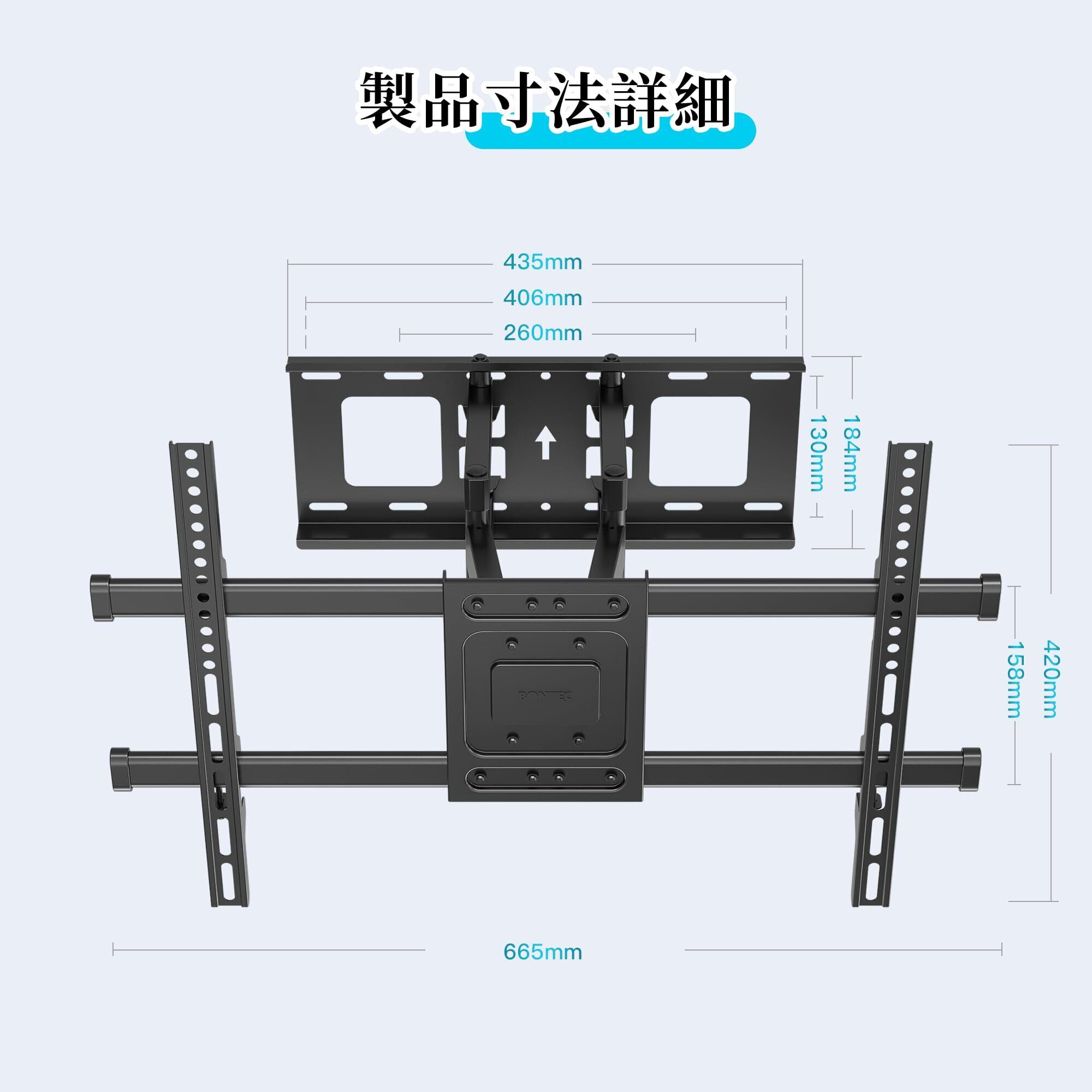 BONTEC テレビ壁掛け金具 32-75インチ 大型耐荷重60kg 対応 VESA600x400mm 可動・チルト&スイベル機能付き tv壁掛け金具 デュアルアーム式 フルモーションテレビかべかけ金具