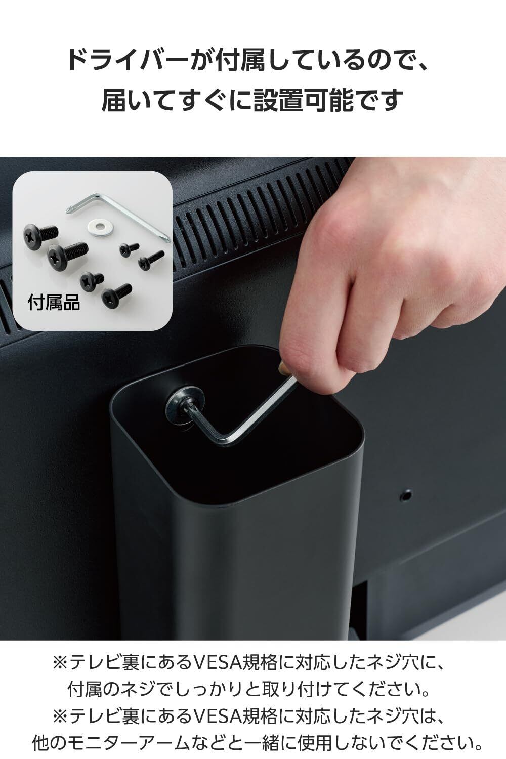 ■※テレビ裏にあるVESA規格に対応したネジ穴に、付属のネジでしっかりと取り付けてください。