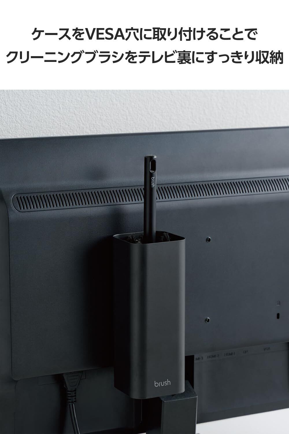 VESA穴に取り付けることができるクリーニングブラシケースです。