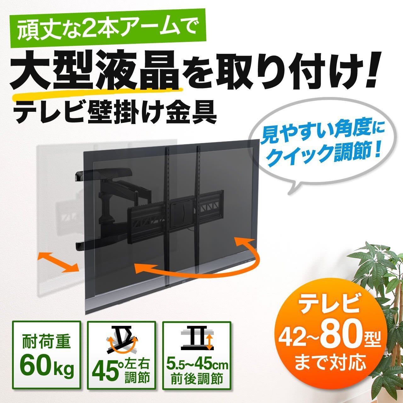 サンワダイレクト テレビ壁掛け金具 42~80インチ対応 角度&前後左右調節 <メーカー別対応表あり> 耐荷重60kg 100-PL006