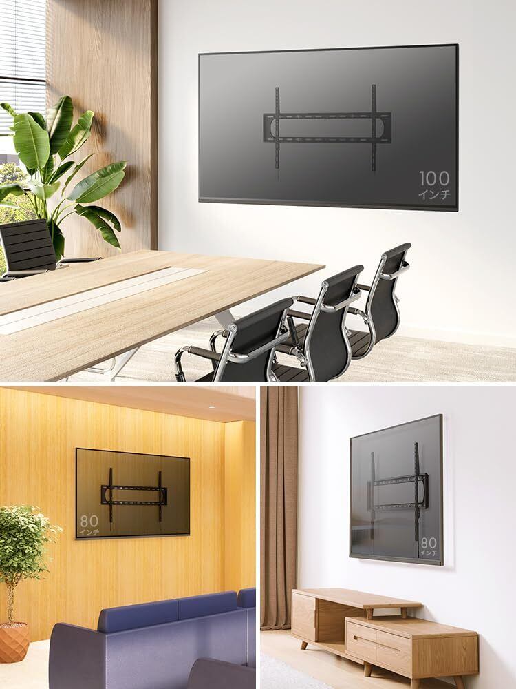 イーサプライ 壁掛けテレビ金具 超大型 100インチまで対応 耐荷重100kg 薄型 壁から3.5cm 固定式 簡単設置 モニター VESA 汎用 EEX-TVKA033