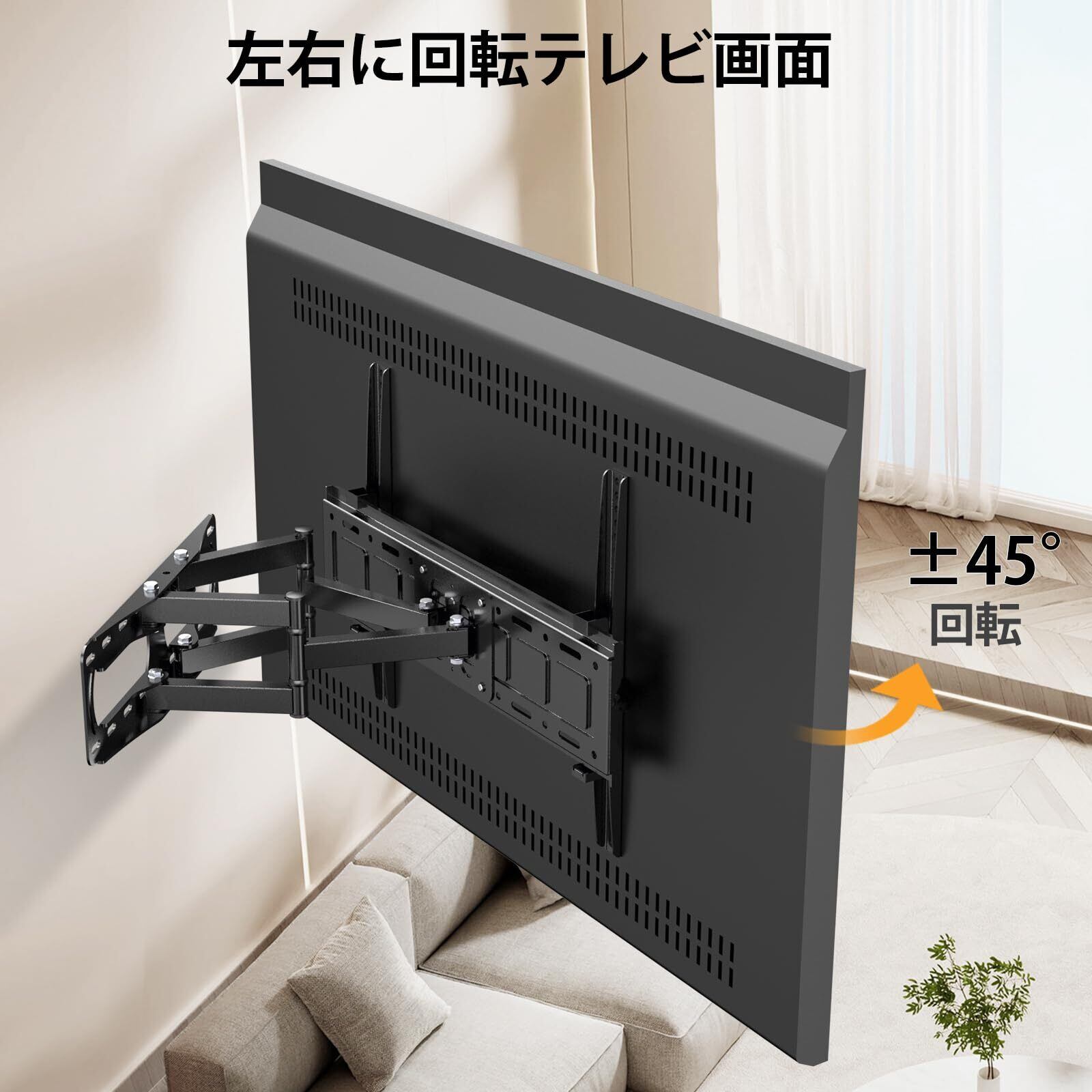 テレビ壁掛け金具アーム式 32-85インチ LED液晶/モニター対応,中大型 回転式壁掛けスタンド 左右 前后 上下向き角度調整,可傾斜壁掛け金具 MAX VESA 600x400 mm,耐荷重50kg,テレビ アーム 壁掛け 可動式40 43 50 55 60 65 70 75 型 TV Wall Mount