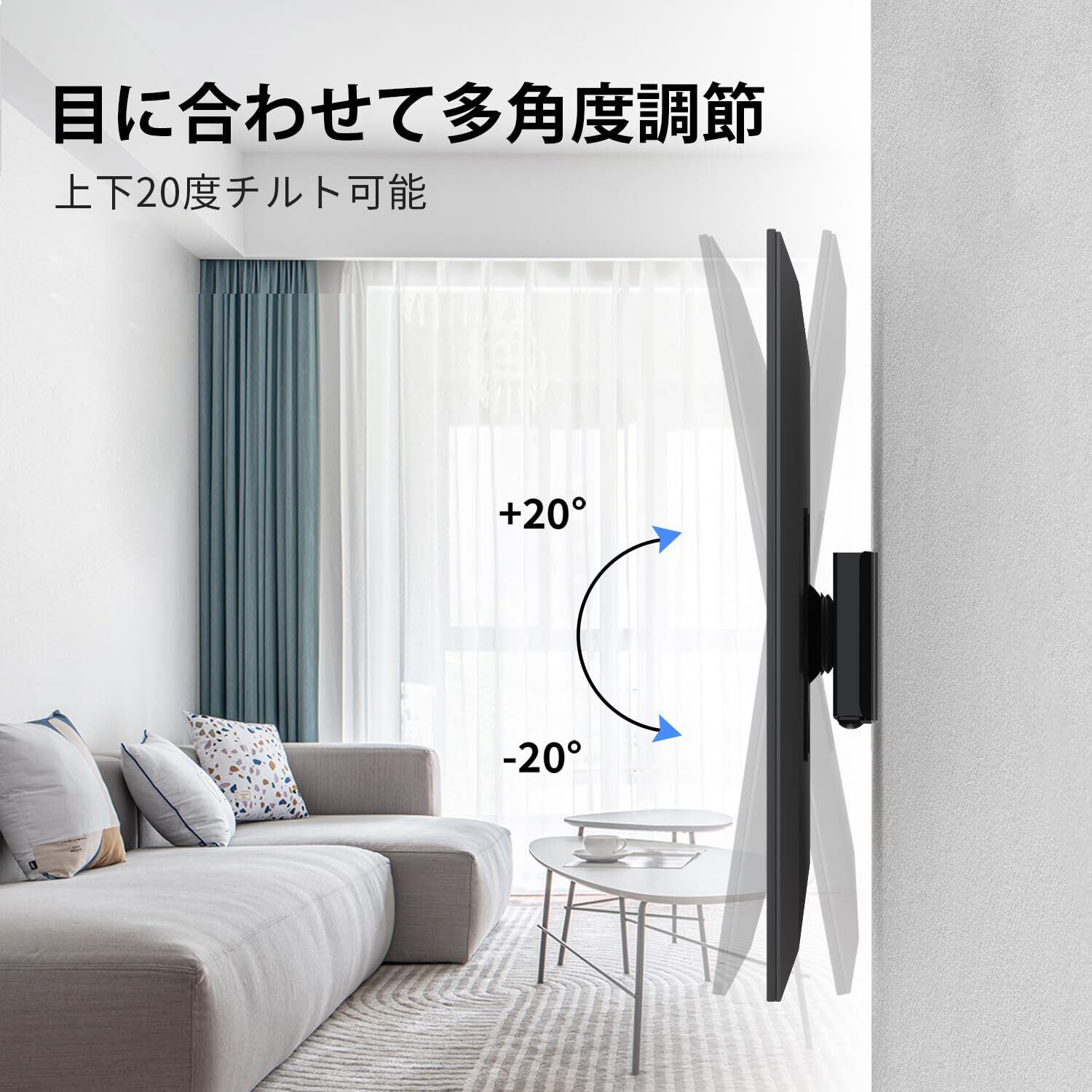 【角度調節可能】上下20度のチルト調節が可能で、最適な視聴角度を実現。360°回転対応で縦位置/横位置の切り替えも自由自在です。
