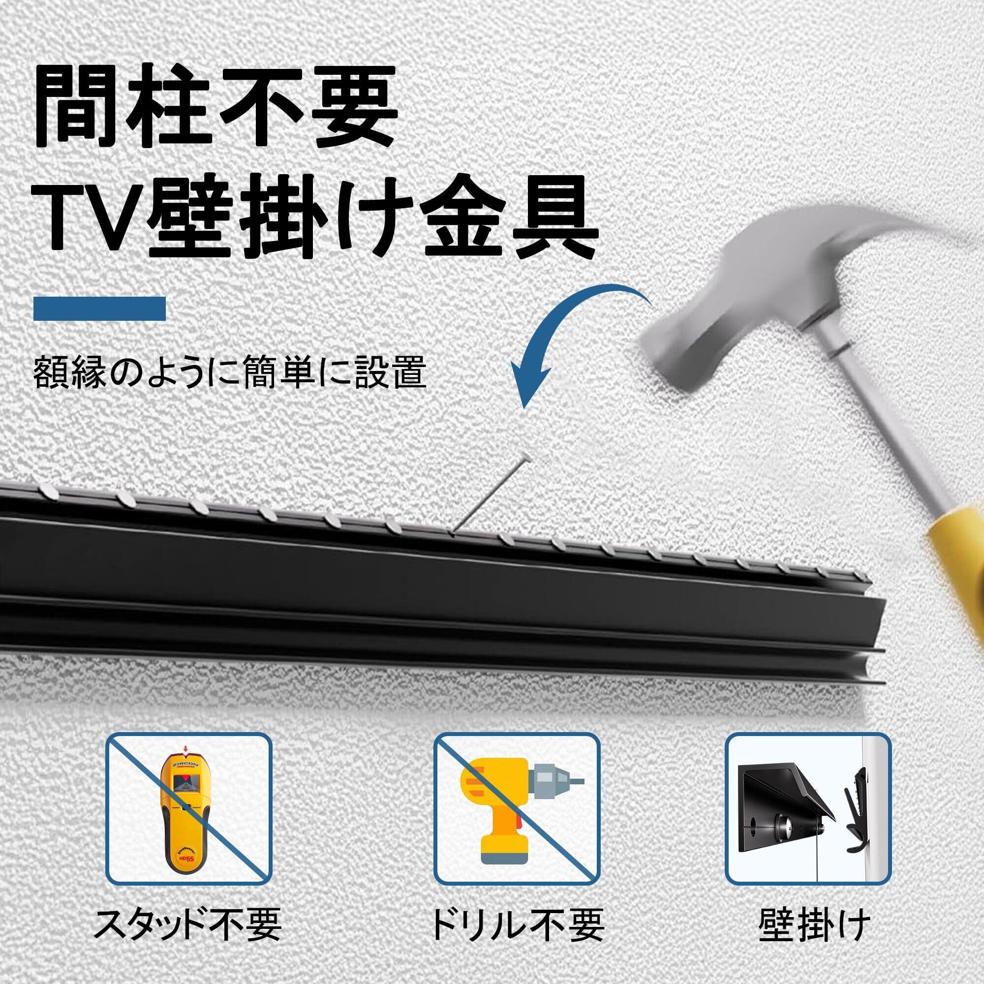 【壁面の損傷を最大限に低減】テレビ壁掛けはスタッド不要、電動ドリルによる穴あけも不要です。石膏ボード、木材、コンクリート、レンガ等多様な壁材をサポート。賃貸物件や壁面の美観保持を重視するユーザーに最適です。