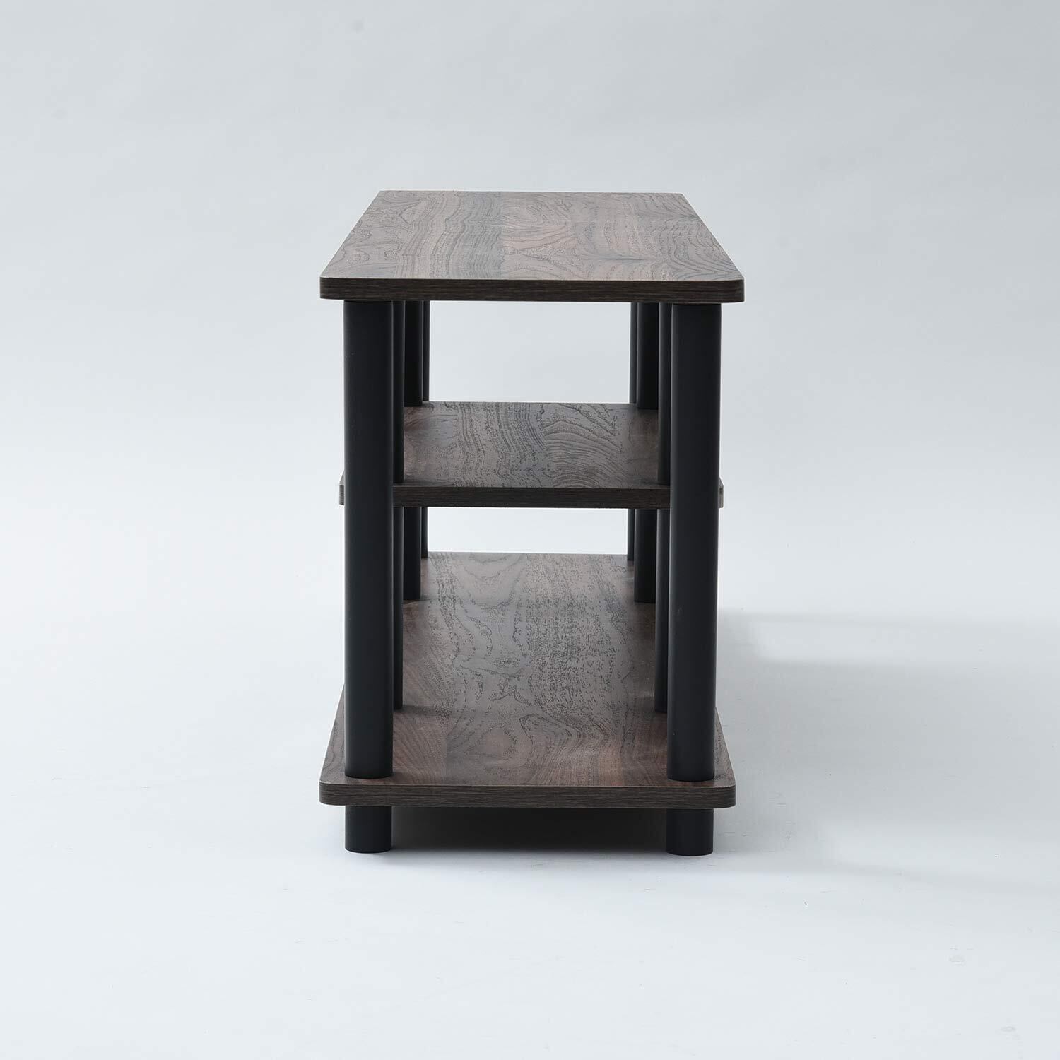 ■本体サイズ(約):幅111.5×奥行30×高さ41.5cm■中段棚板外寸(約):幅60.5×奥行29.5cm■中段棚板内寸(約):幅49×奥行18.5×高さ16.5cm■下段外ポール~内ポール内寸(約):22cm■下段奥行内寸(約):18.5cm■耐荷重(約):天板/20kg、中棚/10kg、下棚/20kg■材質:棚板/プリント紙化粧パーティクルボード、支柱/ポリエチレン・ポリピロピレン