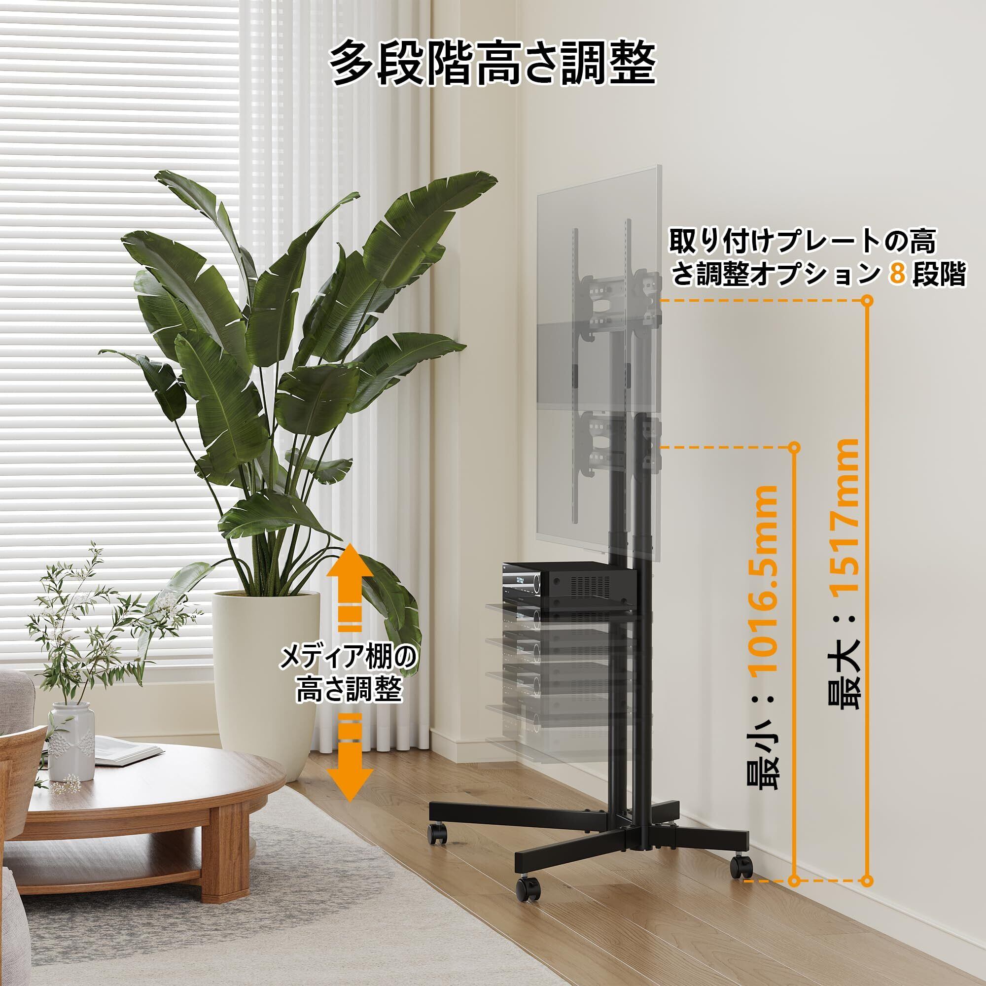BONTEC 壁寄せハイタイプテレビスタンド 32-85インチ対応 スイベル・キャスター付き 高さ調整可能 耐荷重55kg VESA600×400mm 棚板付き 黒 業務用 適格請求書発行可