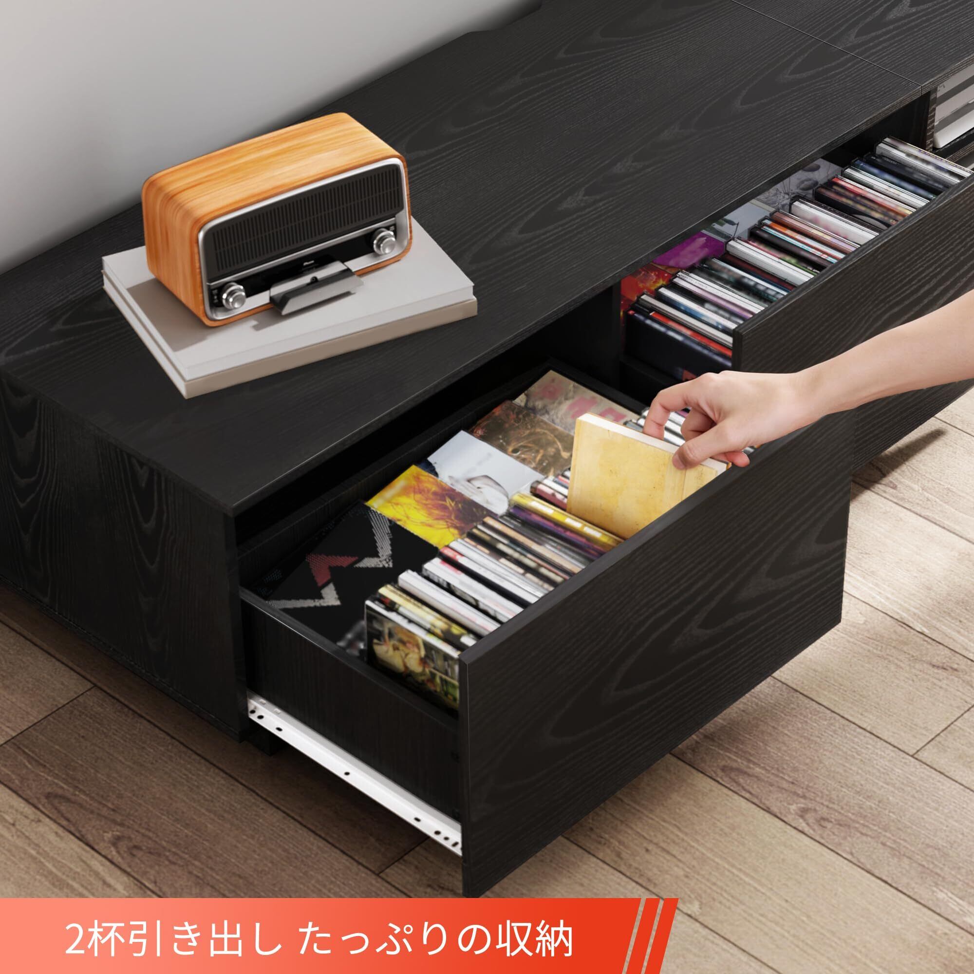 引出し二杯の隠し収納:二つの引出しでお気に入りの雑誌、DVD、ゲーム機などを楽に収納できます。外観はいつもきれいで、埃も防止します。また取っ手がないため、前面がフラットでスッキリに見えます。