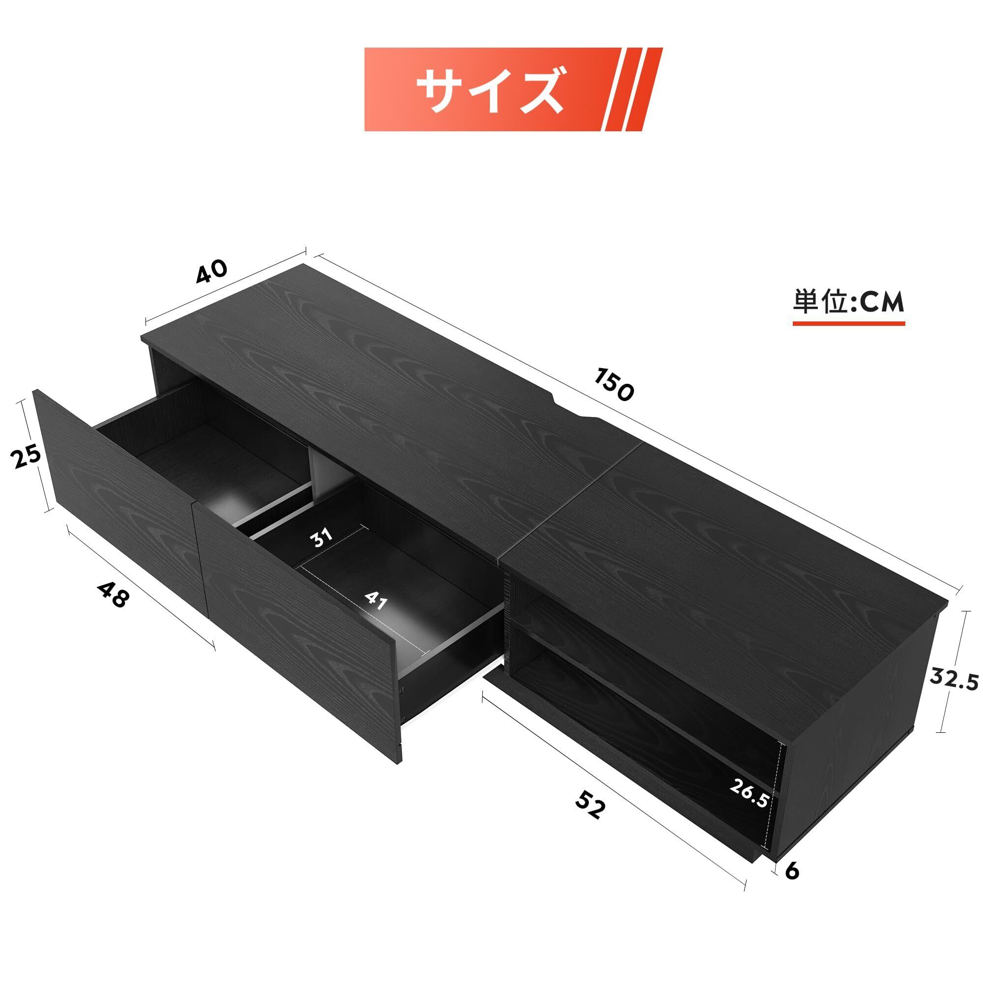 WLIVE テレビ台 テレビボード ローボード tvボード 木製 壁寄せ 幅150 奥行40 高さ33cm AV機器対応 棚付き 引出付き 隠す収納スペース ブラック