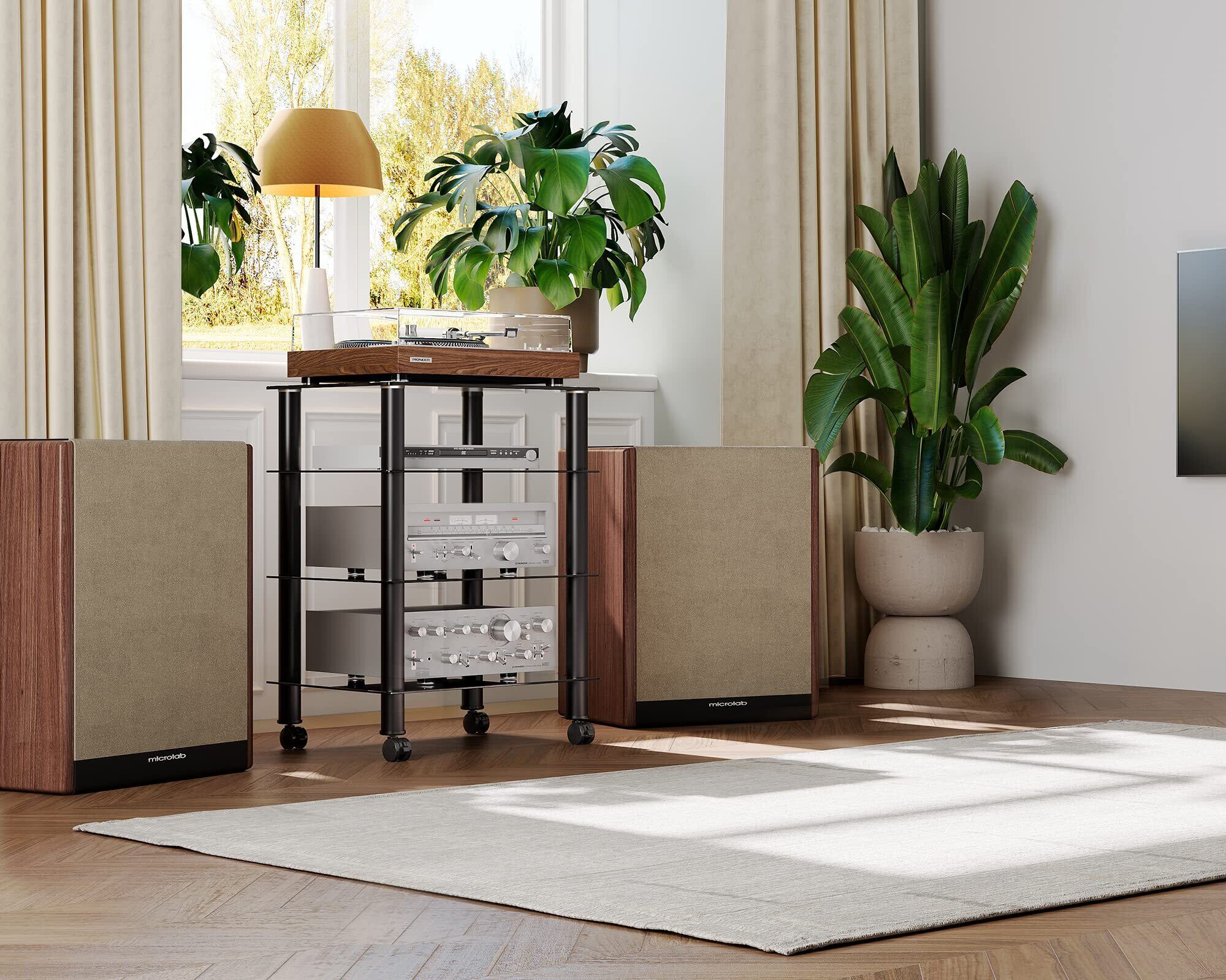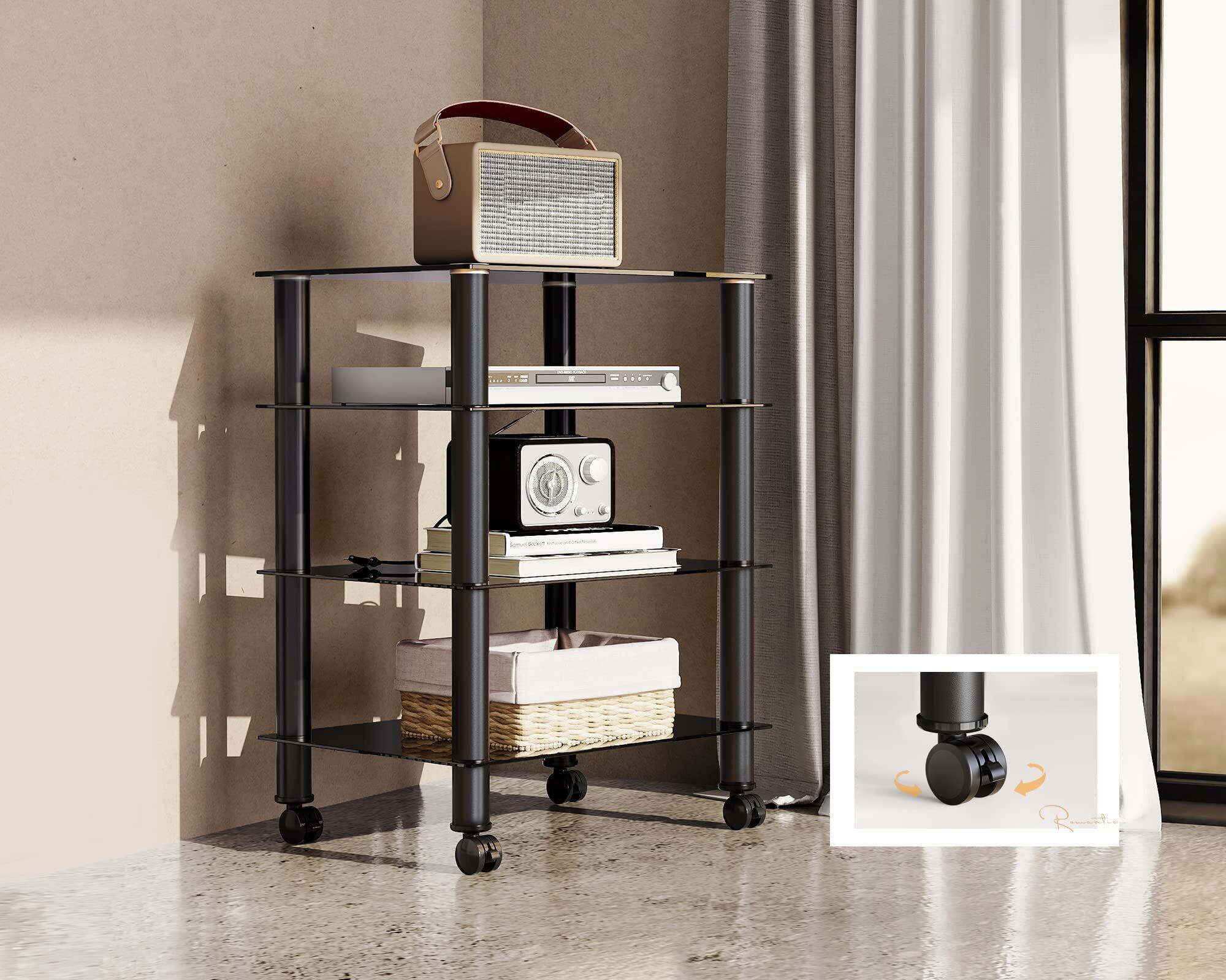 FITUEYES オーディオラック キャスター付き メディア スタンド コンポーネント 4段 強化ガラス 幅600mm ブラック AS406005GB