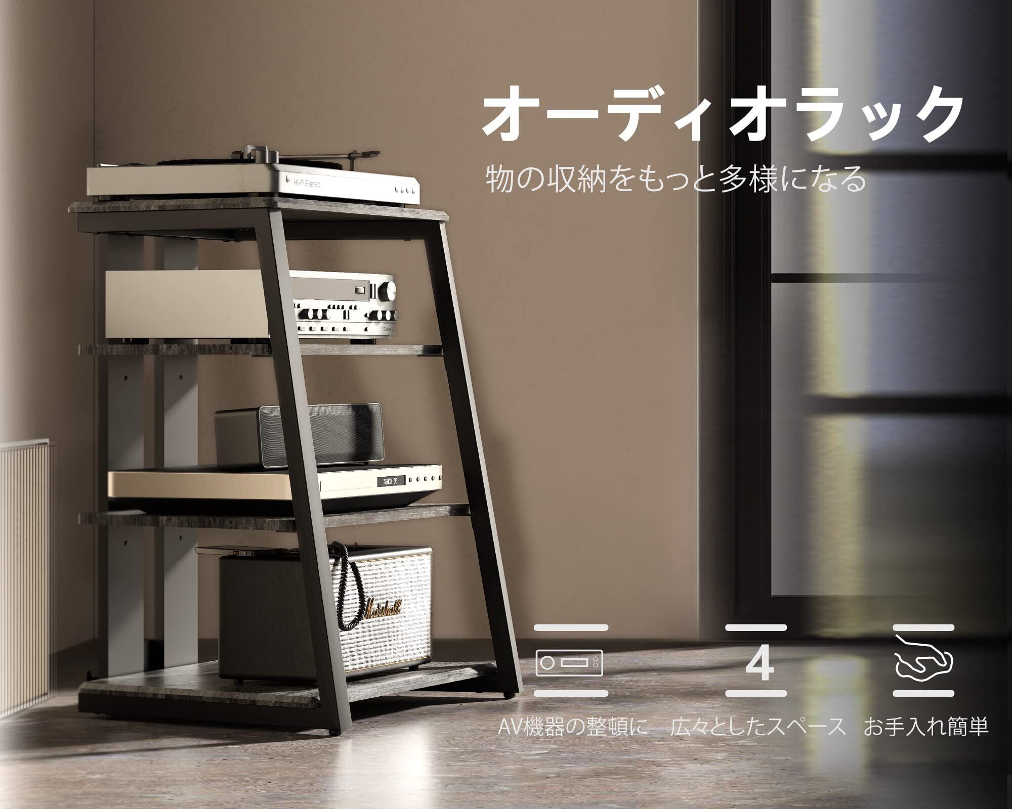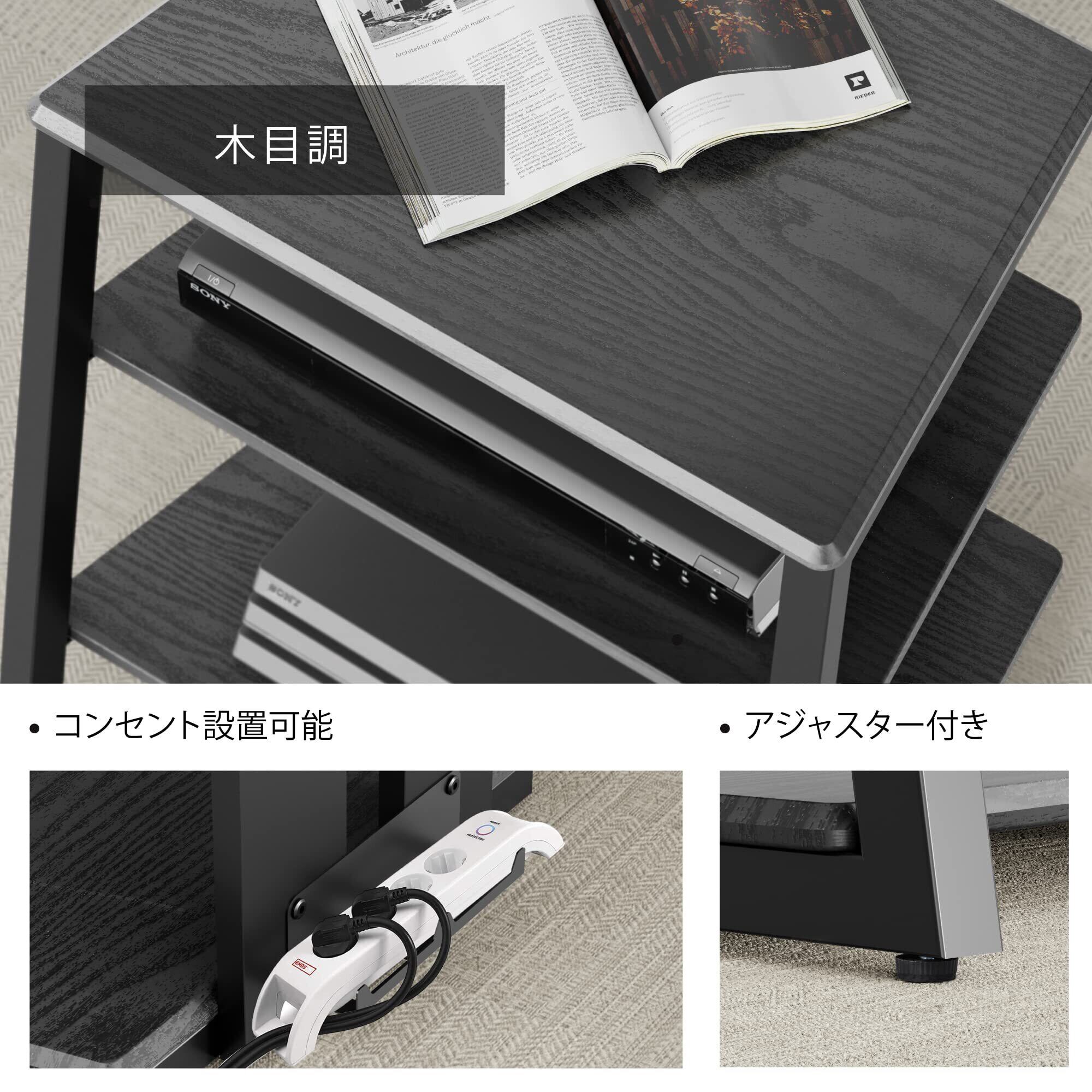 FITUEYES DESIGN オーディオラック インテリア 台形 木目調仕上棚板 AV ラック スチール製フレーム 裏面配線 ピッチ調整可 ブラック エッフェルシリーズ F07F4062B