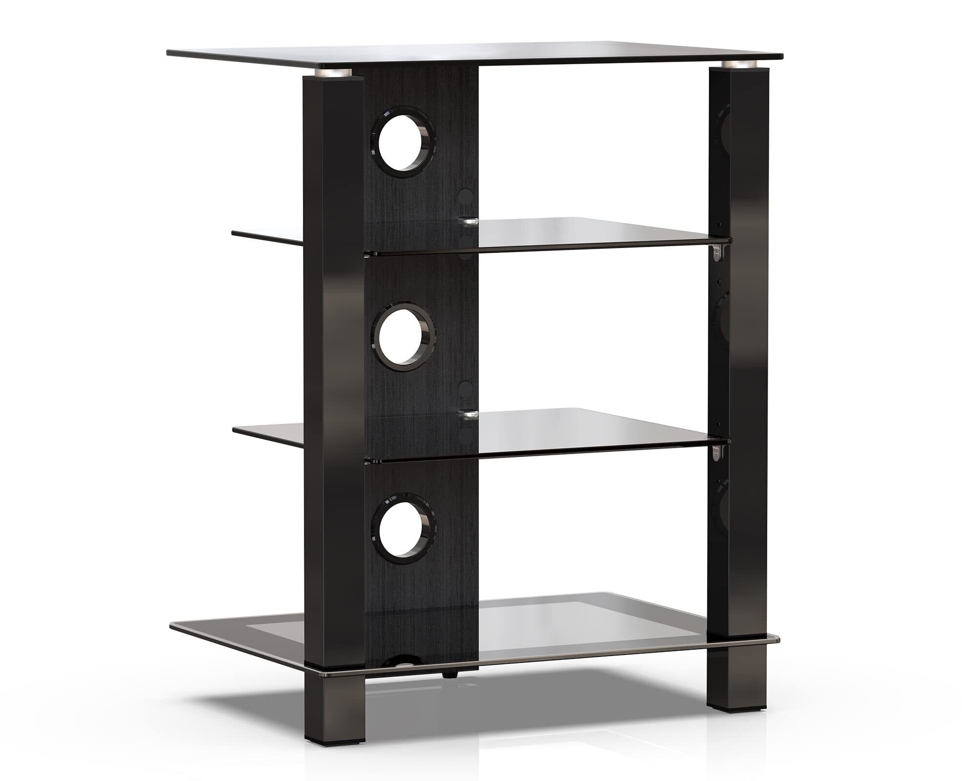 FITUEYES オーディオラック アンプラック パワーアンプキャビネット オーディオスピーカーアンプキャビネット CDアンプ機器ラック プリンタブラケット ホームストレージシェルフ 強化ガラス オープンタイプ 北欧風 ブラック 4段 AS406003GB