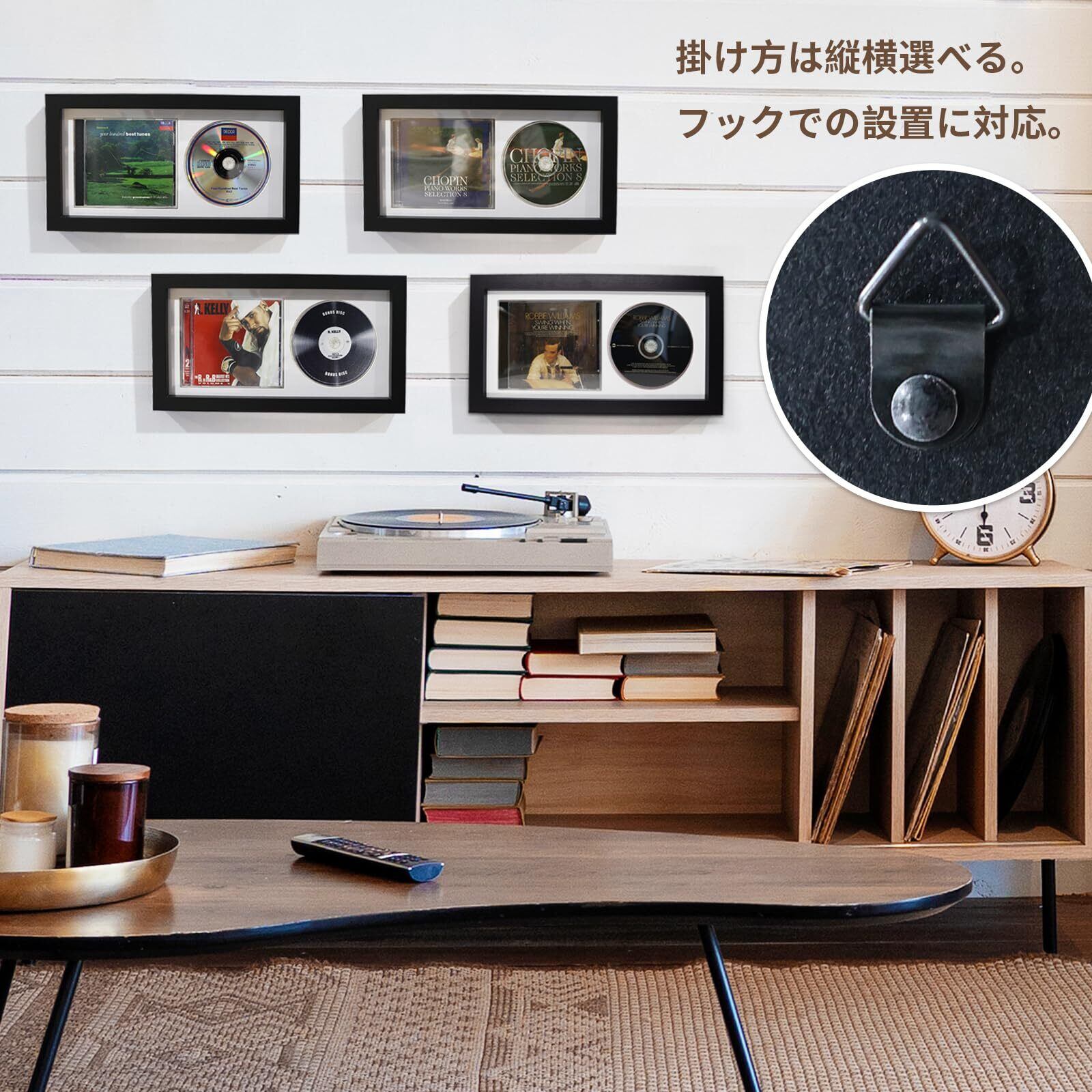 CD ディスプレイフレーム 壁掛け収納棚 ジャケットとディスクを一緒に飾る 縦横対応 インテリア飾り棚 ブックレット収納 保護ケース ウォールディスプレイ