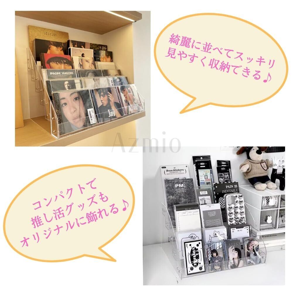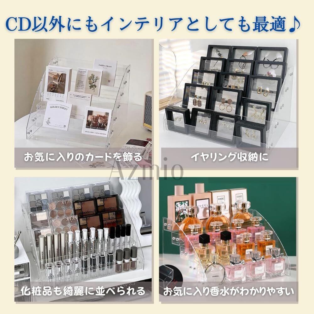 Azmio CD 飾る CDラック CDスタンド ディスプレイ 卓上収納 透明アクリル DVD展示 (4段)