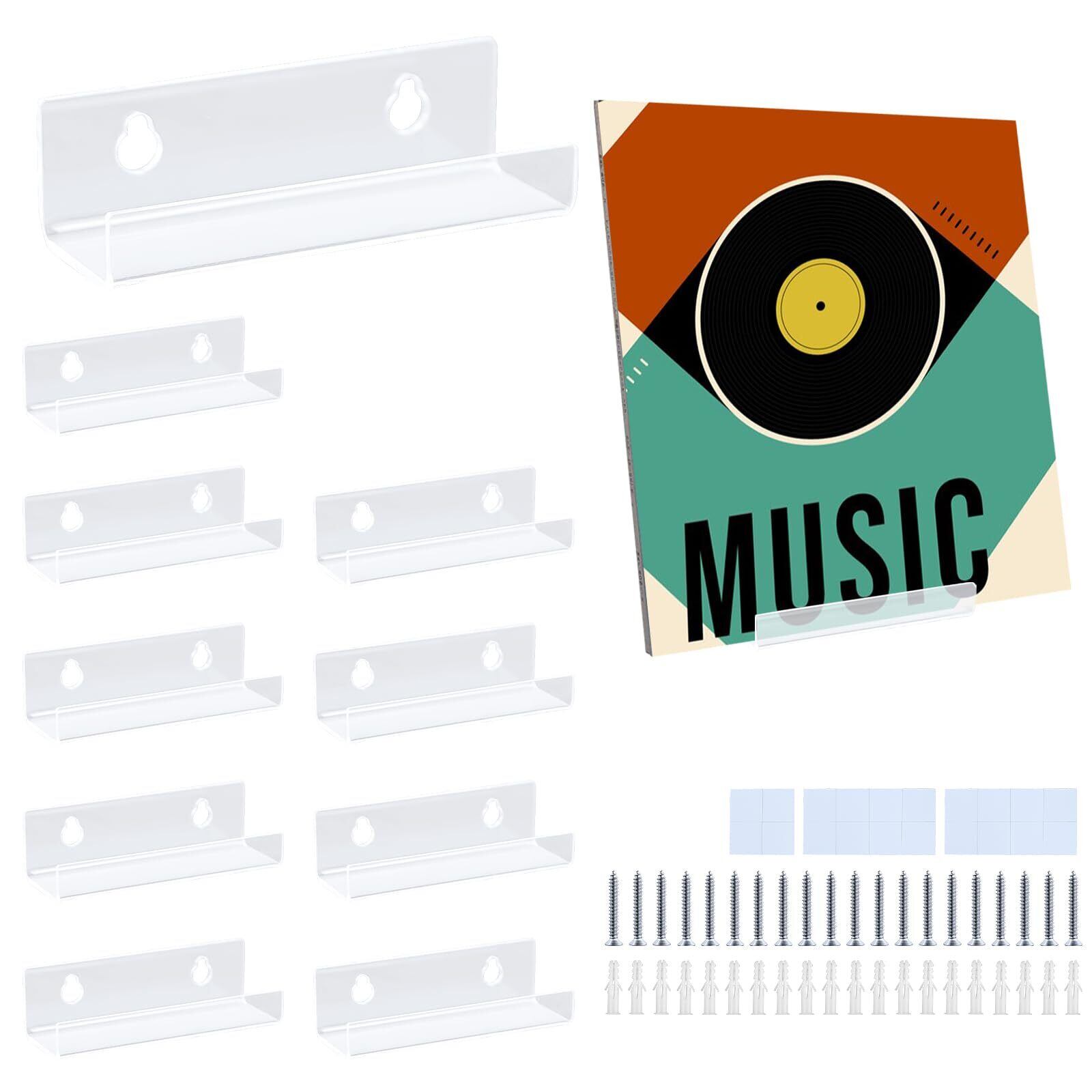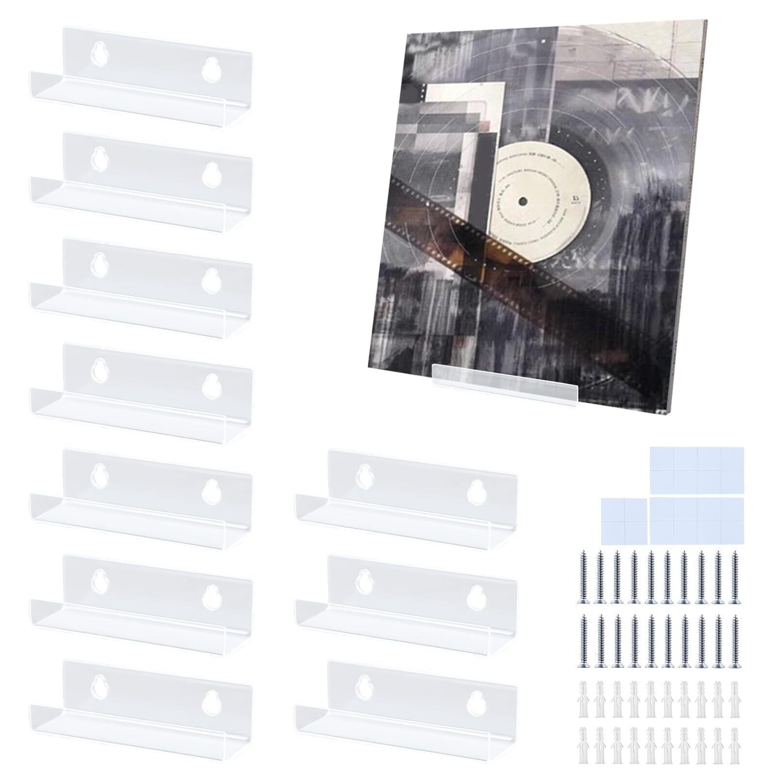 レコードラック 10個セット cd 壁掛け アクリル製 長さ10cm レコード壁掛け棚 cd 展示 マガジンラック 簡単取付 ネジとテープ付き LPレコードディスプレイ CDラック 写真 フィギュア 壁面収納 ディスプレイ record wall display