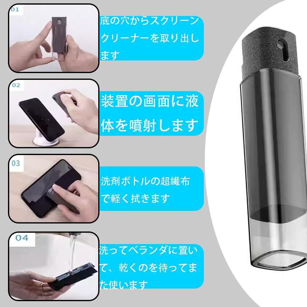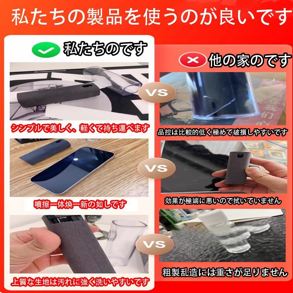 【スクリーンクリーナー】従来のクリーニングセットを一体化し、スプレーボトル、超極細繊維クロス、保護ケースの3部構成。洗剤の詰め替え可能な設計で非常に便利。洗剤の選択:水のみ、薄めた食器用洗剤(1~2滴)、市販のクリーナー。