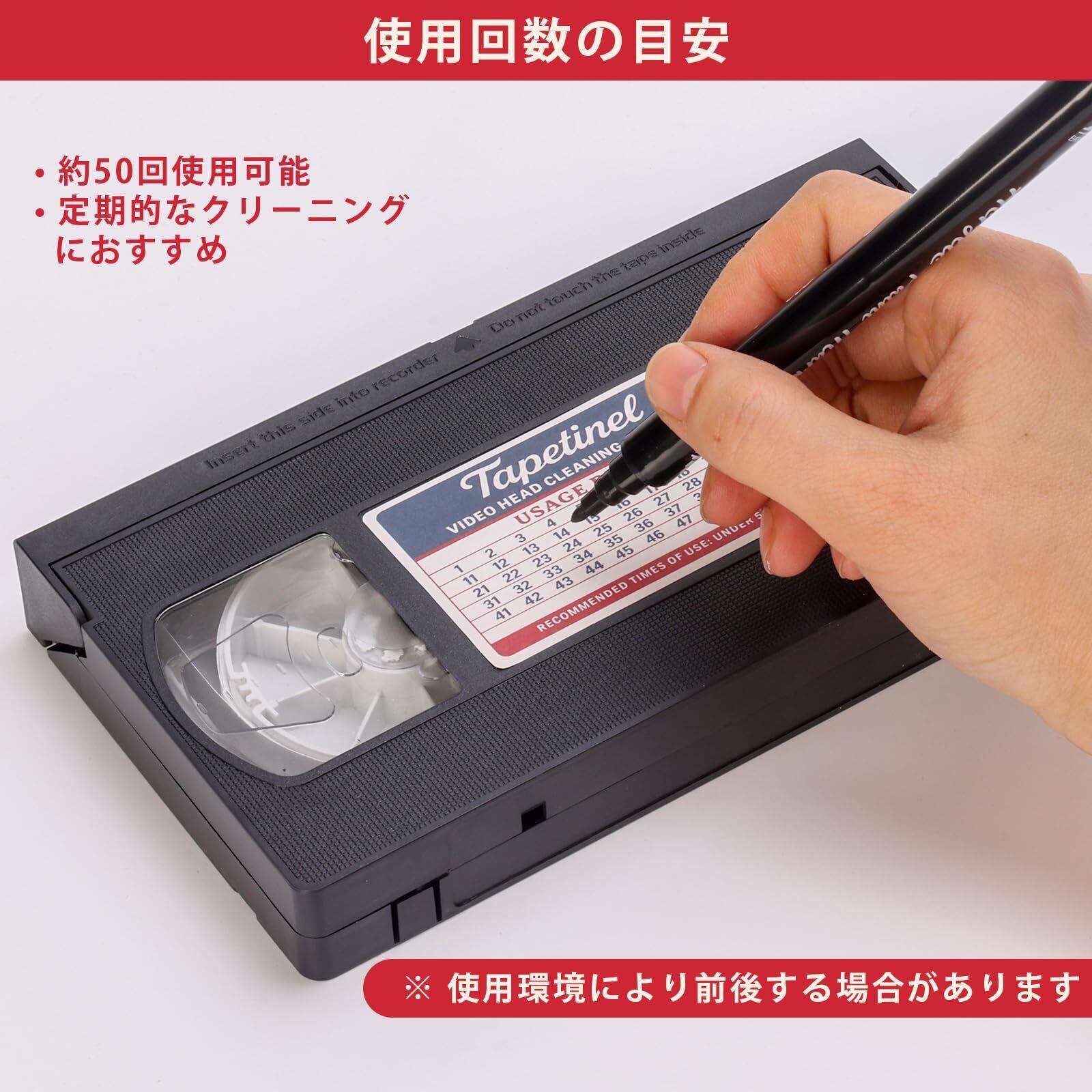 50回繰り返し使用可能 – 1本で約50回使用でき、定期的なVHSプレーヤーのメンテナンスに最適。
