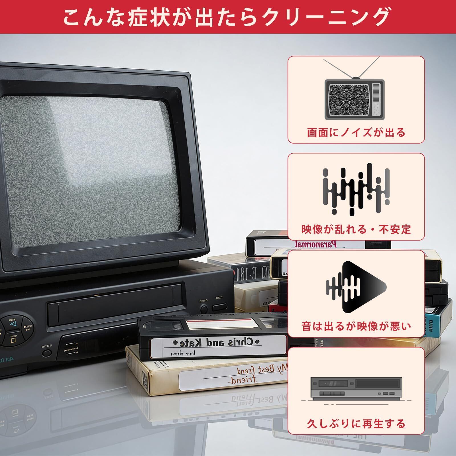 簡単メンテナンス – VHSビデオデッキやプレーヤーのヘッドを簡単に清掃、分解不要で手間なし。