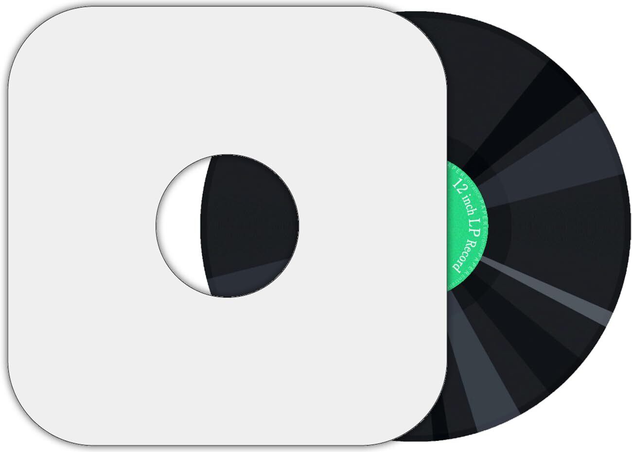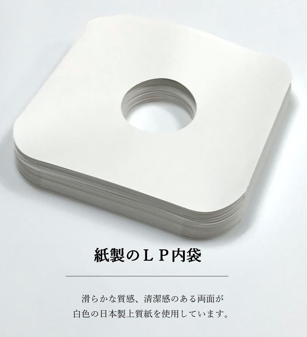 特徴 : (1)ビニール製に比べ静電気が発生しずらい紙製 (2)穴あきレーベル加工 (3)スリーブ・ジャケットに入れやすい角丸(角なし)加工 (4)水性・油性ペンでの筆記適正あり