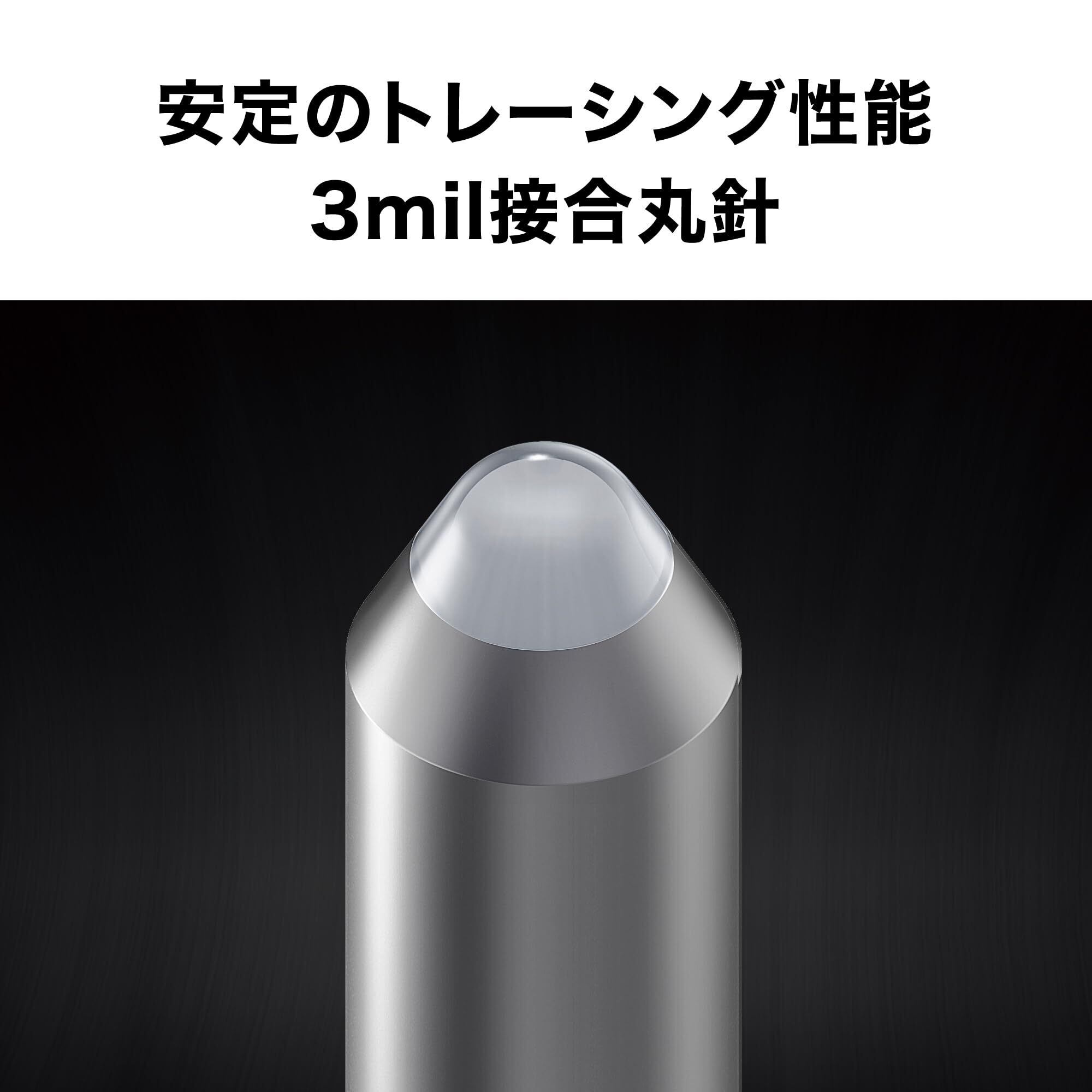 狙った位置に針を落としやすい、針先視認性の高いデザイン