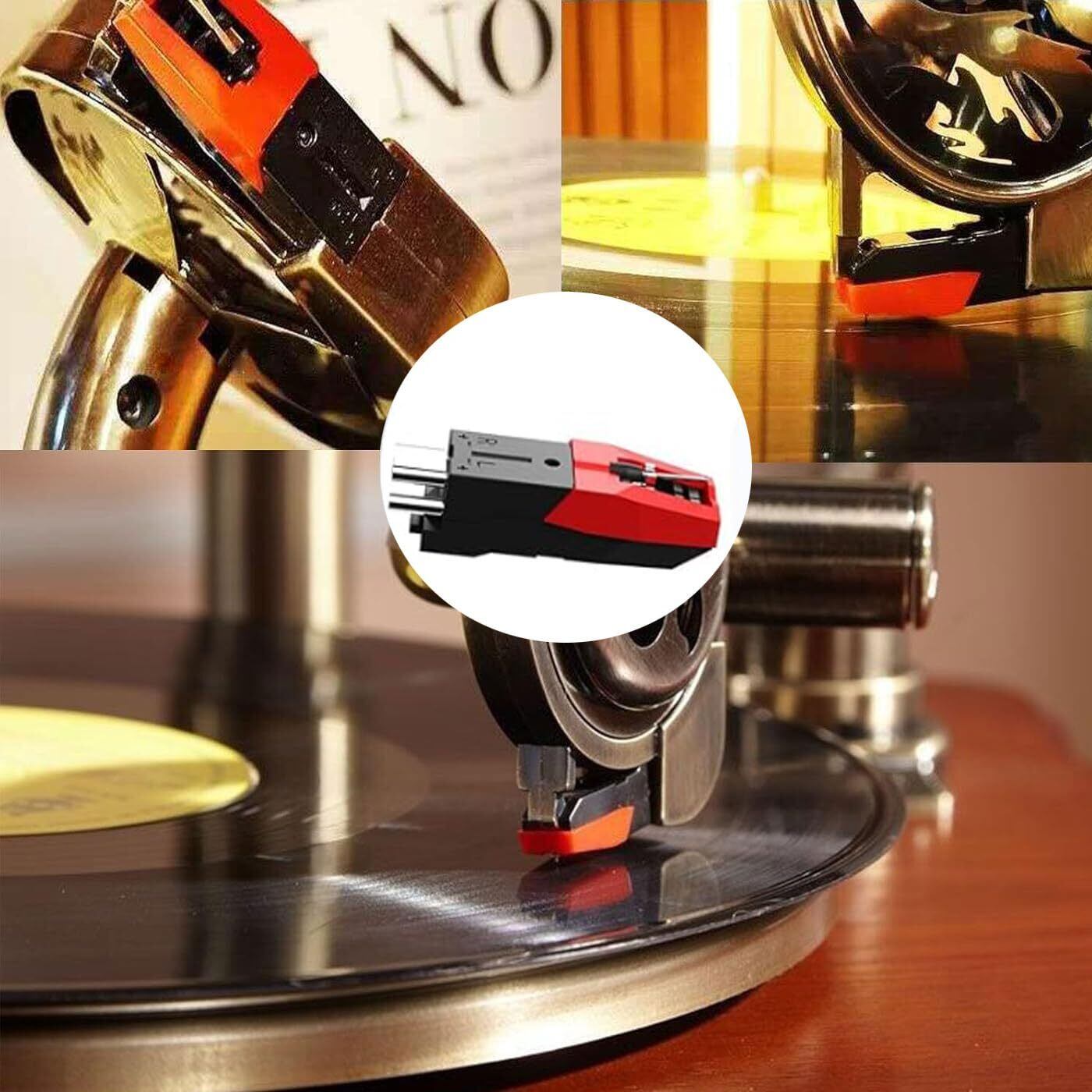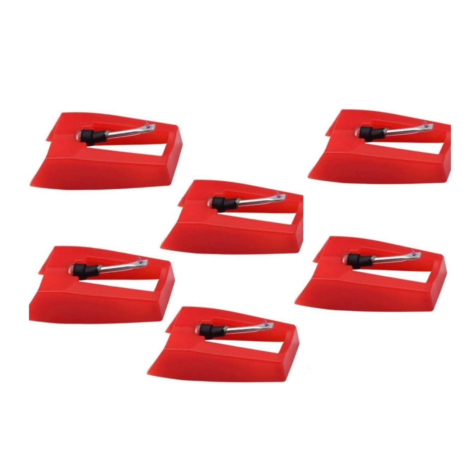 レコード針 交換針 6個セット ターンテーブルスタイラス交換ターンテーブルプレーヤー 蓄音機 交換用レコード針 丸針 (赤)