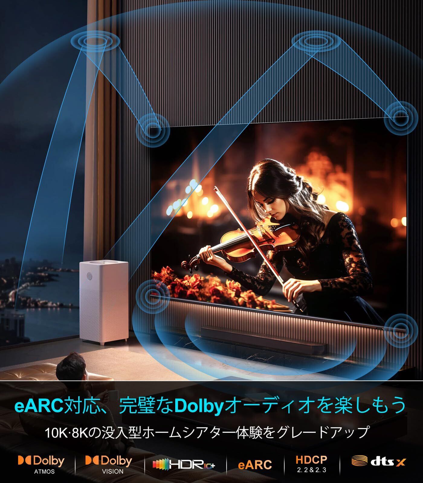 HDMIダイナミックHDRと優れた音質: このHDMIケーブルはダイナミックHDRに対応し、12ビットの色精度で圧倒的にリアルな映像を実現します。eARC(強化オーディオリターンチャンネル)機能により、Dolby AtmosやDTS:Xなどの高音質オーディオをテレビからサウンドバーやAVレシーバーに直接送信できます。また、HDCP 2.3/2.2、イーサネット、3Dにも対応しています。