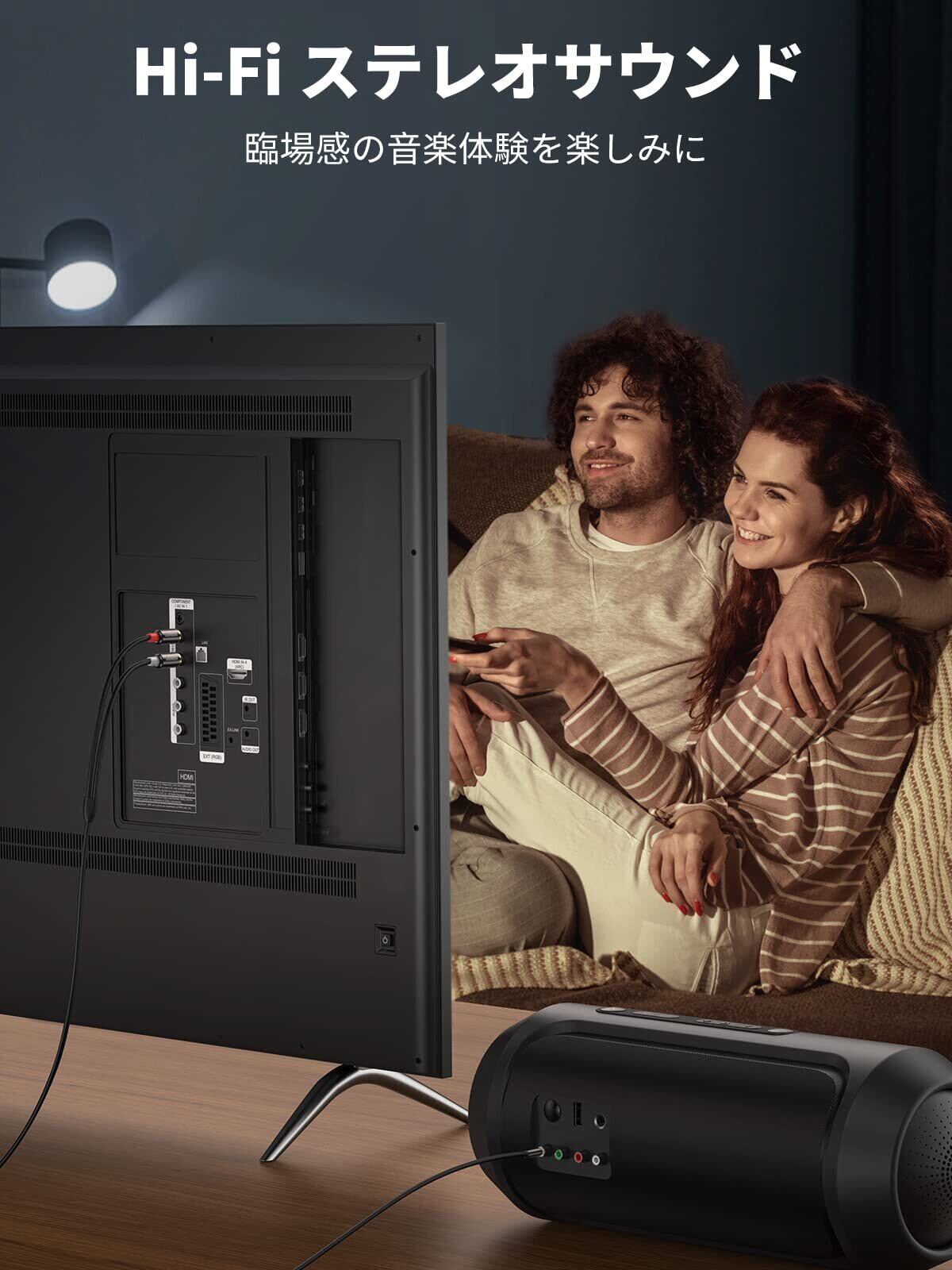 【RCA オーディオケーブル】3.5mmステレオミニプラグ to RCA オーディオケーブルは、パソコン、テレビ、スマートフォン、タブレット、MP3プレーヤー、カーナビ、プロジェクターなどの3.5mmミニジャックを搭載したオーディオデバイスをスピーカー、ミニコンポ、AVアンプ、サウンドバー、ホームシアター、CDラジオなどのRCA対応機器に接続用なアナログオーディオ変換ケーブルです。