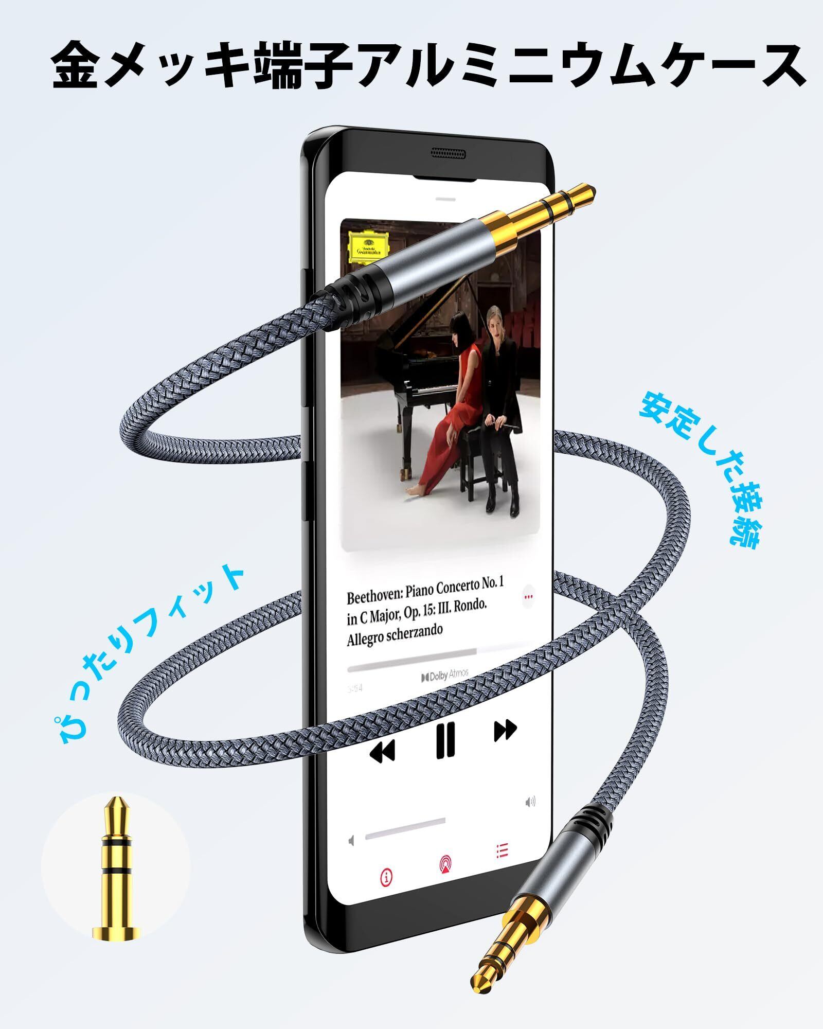 高強度ナイロン編み:Highwings AUXオーディオケーブルには、高強度で破損しにくいナイロンケーブルで編組されています。25,000回以上の曲げテストと引っ張りテストを経て、長寿命をします。内部錫メッキ銅線と多層シールド保護により信頼性を確保し、信号損失を低減し、クリアなオリジナルサウンドを提供します。