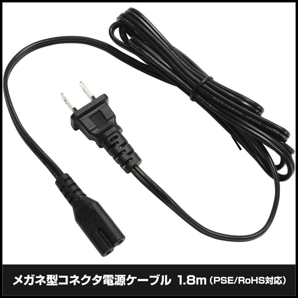 Kaito Denshi(海渡電子) AC電源ケーブル メガネケーブル ストレート メガネ型 メガネコード ストレートタイプ コネクタ 2ピン ブラック RoHS 180cm