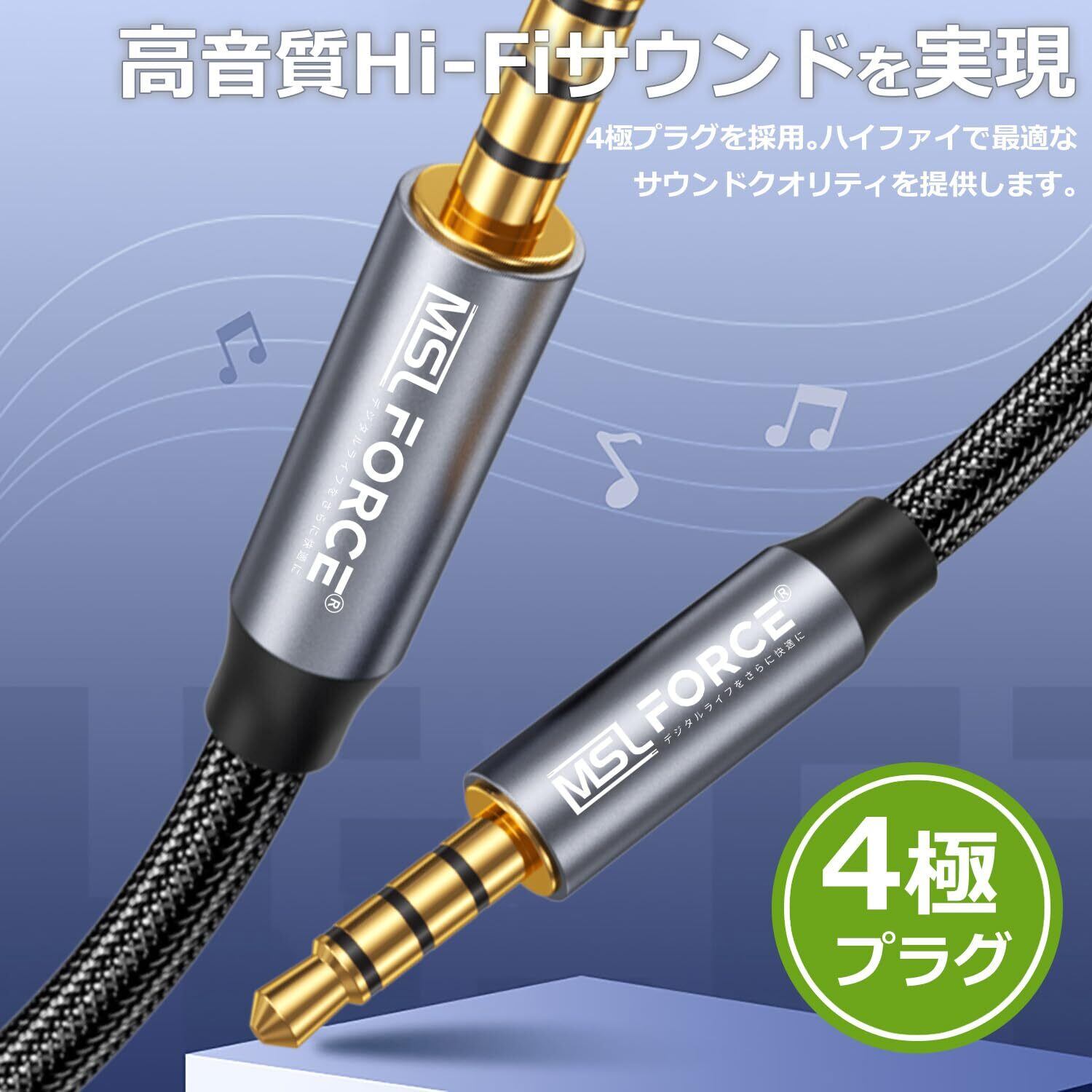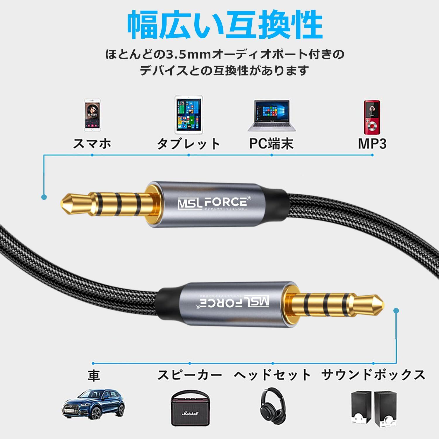 【双方向対応】オーディオケーブル(オス-オス)は双方向伝送・互換が可能です。4極対応で様々な3.5mmジャック付きの機器(ヘッドセット付きのマイクロフォンも含む)に対応しています。