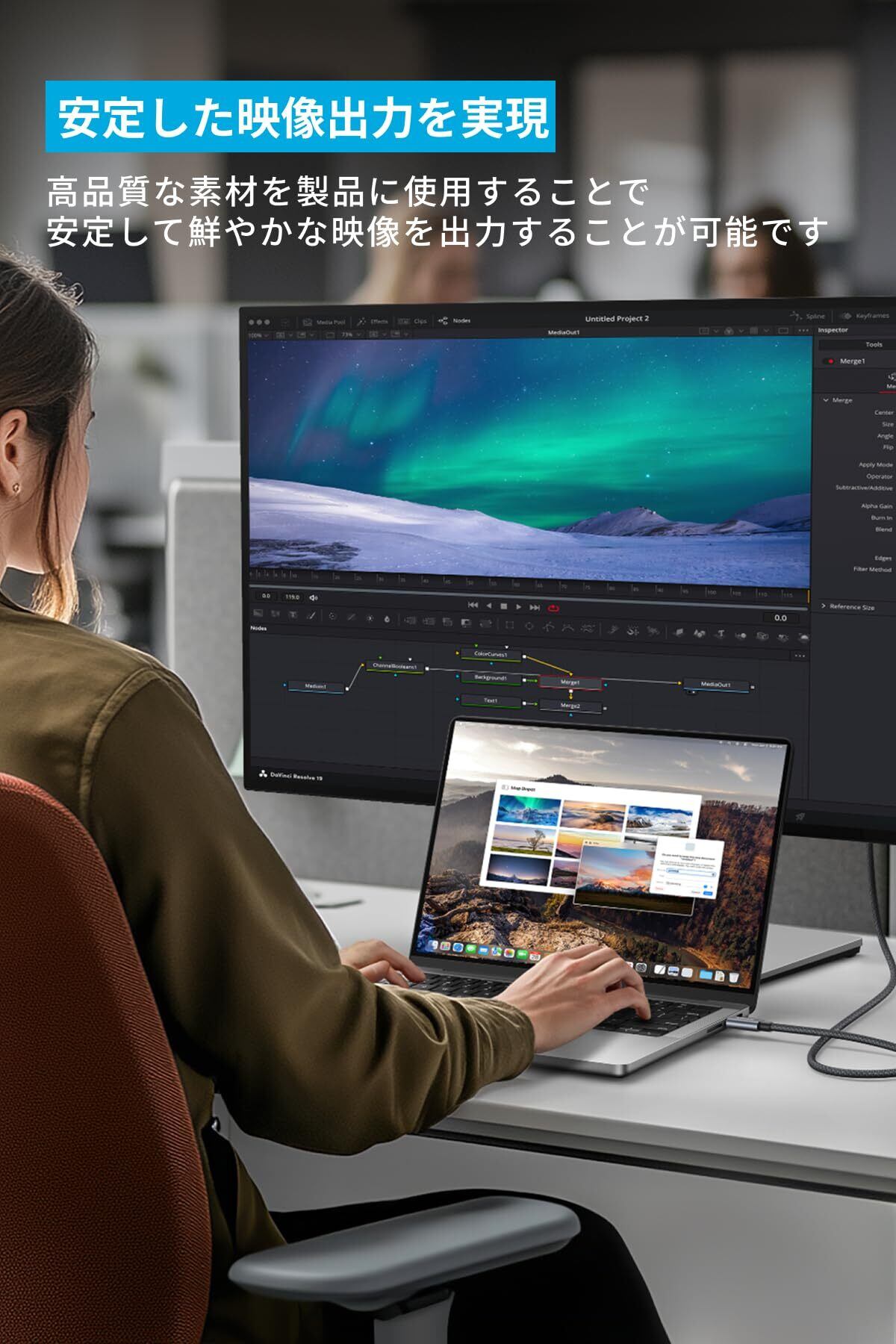 鮮やかで安定した映像で生産性を向上:4K 60Hzに対応し、鮮明で安定した映像をお楽しみいただけます。