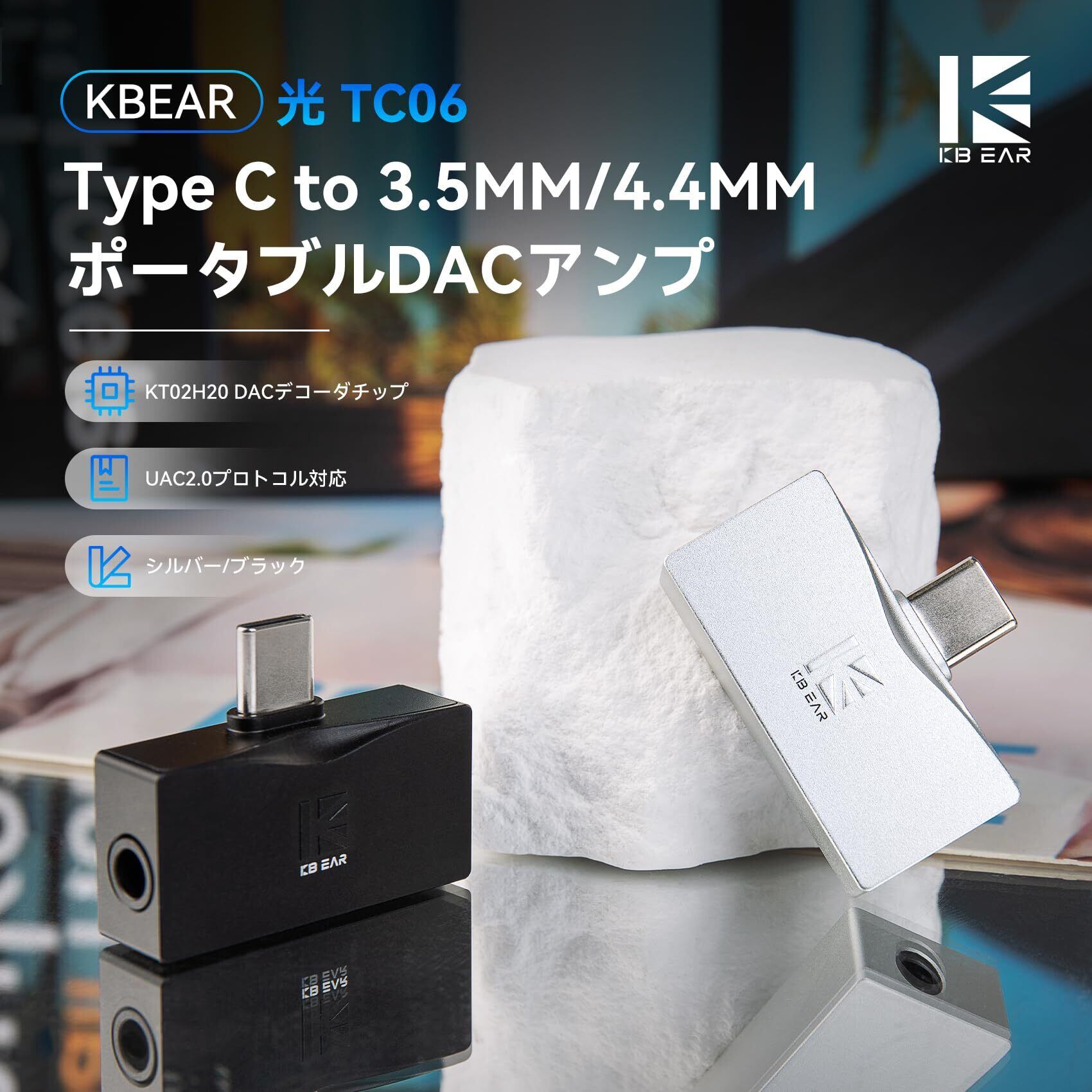 dac KBEAR TC06 dac usb-c ドングルdac アンプ小型 AMPKT02H20チップ搭載 USB C - 3.5/4.4mm出力 ヘッドホンアンプ 小型 デュアルコア駆動 UAC2.0プロトコルを採用 dac アンプ スマホ/PC/タブレット、Android、Windows、Mac、iOS対応 イヤホンジャック 変換 タイプc(ブラック)