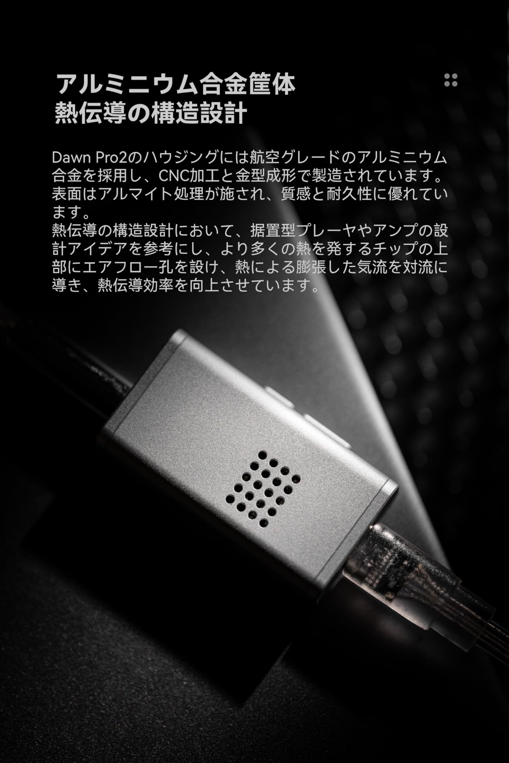 100段階の音量調整:ボリュームコントロールは、スマホから分離され、100段階の調整が可能です。シルクのように滑らかな操作性を実現し、優れたパフォーマンスと快適なリスニング体験を提供します。【破暁 - DawnPro 2】は、新世代技術と測定基準を融合したシンプルかつ高効率なオーディオ設計により、コンパクトながら圧倒的な性能を実現。イヤホンの駆動はもちろん、Line Outでのイヤホンアンプやアクティブスピーカーとの接続にも対応し、ピュアで繊細な聴きやすいサウンドを提供します。
