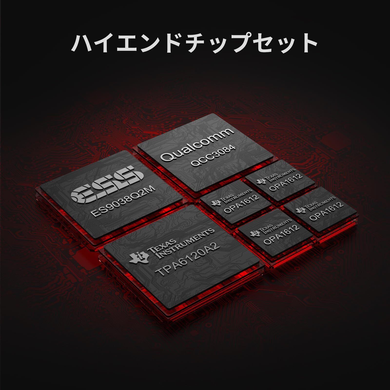 【チップセット】:ES9038Q2Mデコードチップ+OPA1612×4超低ノイズオペアンプチップ+QCC3084高スペックBluetoothチップを採用,ピュアオーディオの核となる駆動装置として、あらゆるヘッドホンの卓越した潜在能力を精密に解き放ちます。