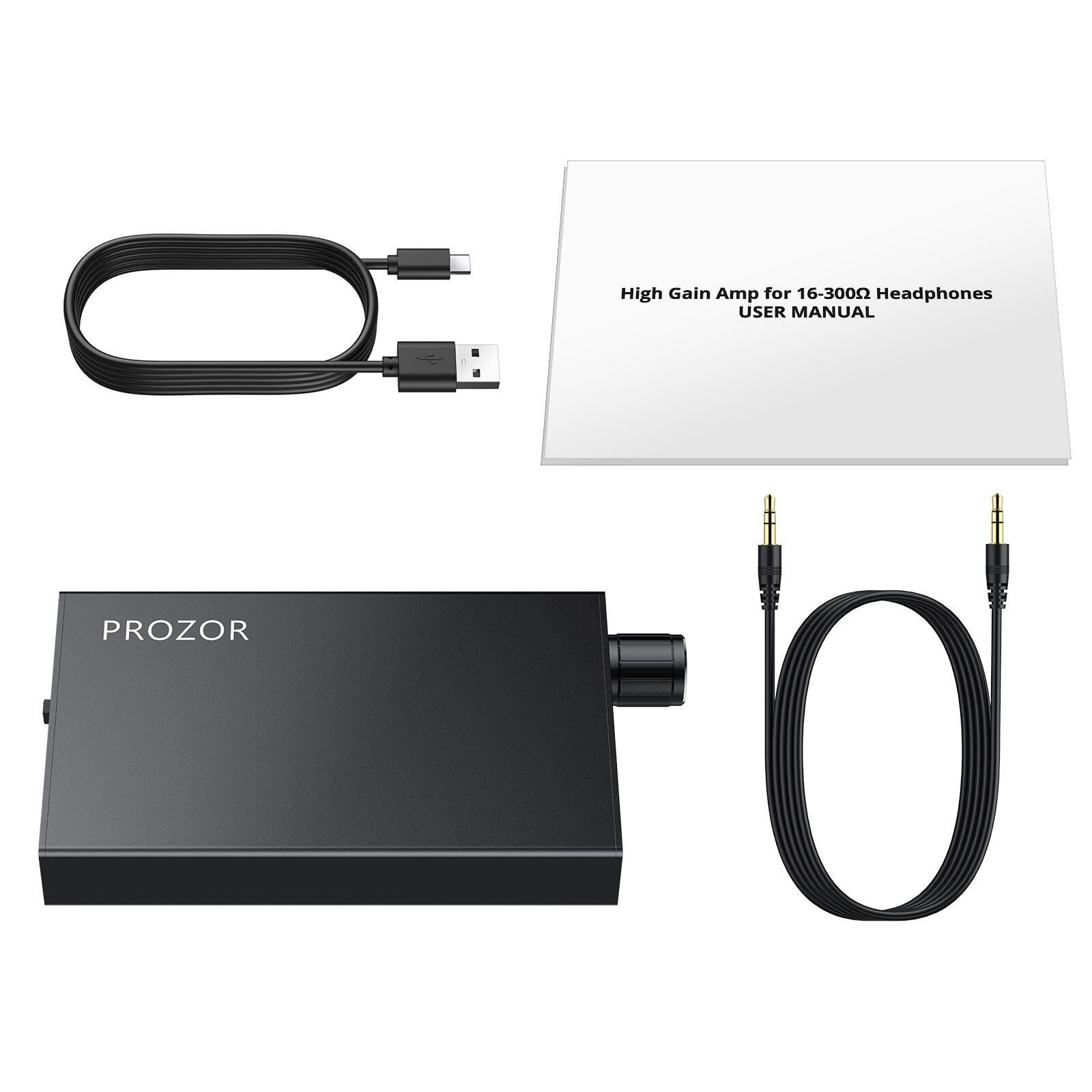 PROZOR ヘッドホンアンプ ポータブル HIFI 16~300Ωヘッドフォン対応 ハイレゾ対応 2段階ゲインスイッチ 音量調整 8時間以上動作 3.5mm入力/出力 アルミ合金外殻 MP3/MP4/携帯電話/パソコンなど対応 オーディオケーブル 日本語説明書付き