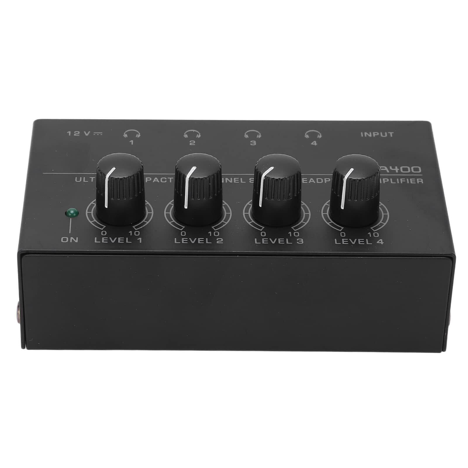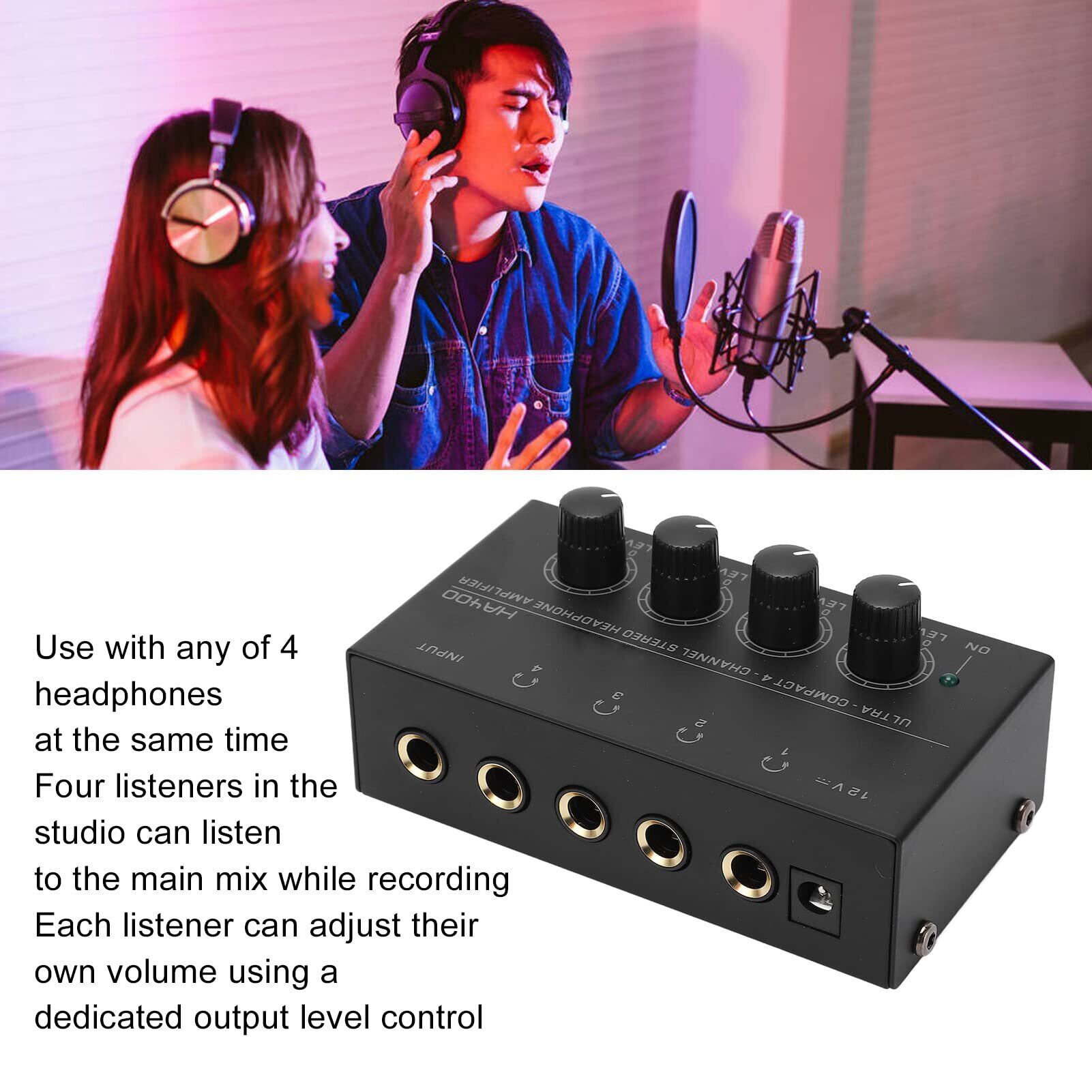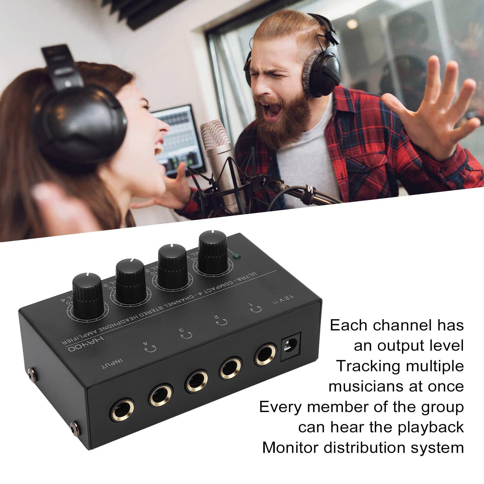 ステレオヘッドホンアンプ、HA400 4チャンネルステレオヘッドホンアンプ超コンパクト出力レベル調整ボリュームUSプラグ100‑240VACステージ用録音用