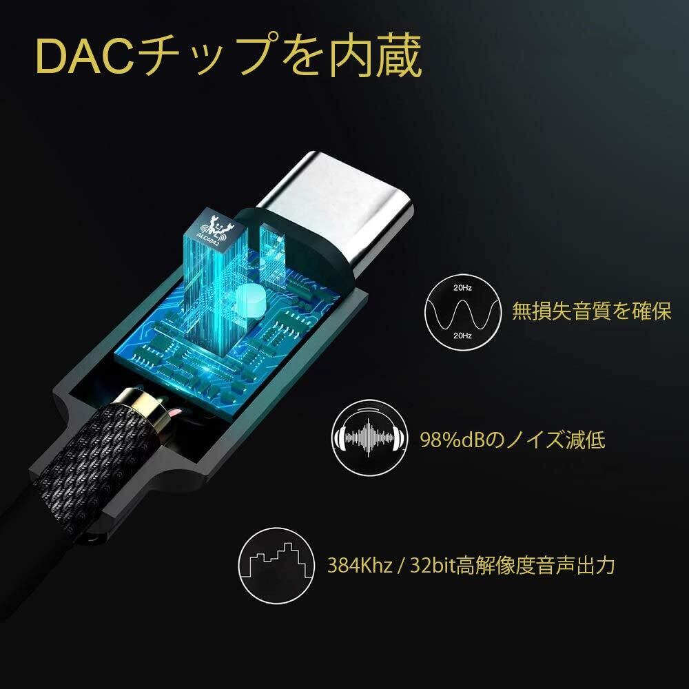 USB-C 3.5mmオーディオアダプター ヘッドフォンアダプターケーブル 384Khz / 32bitオーディオ出力とマイク入力ケーブル、内蔵DACチップ付き