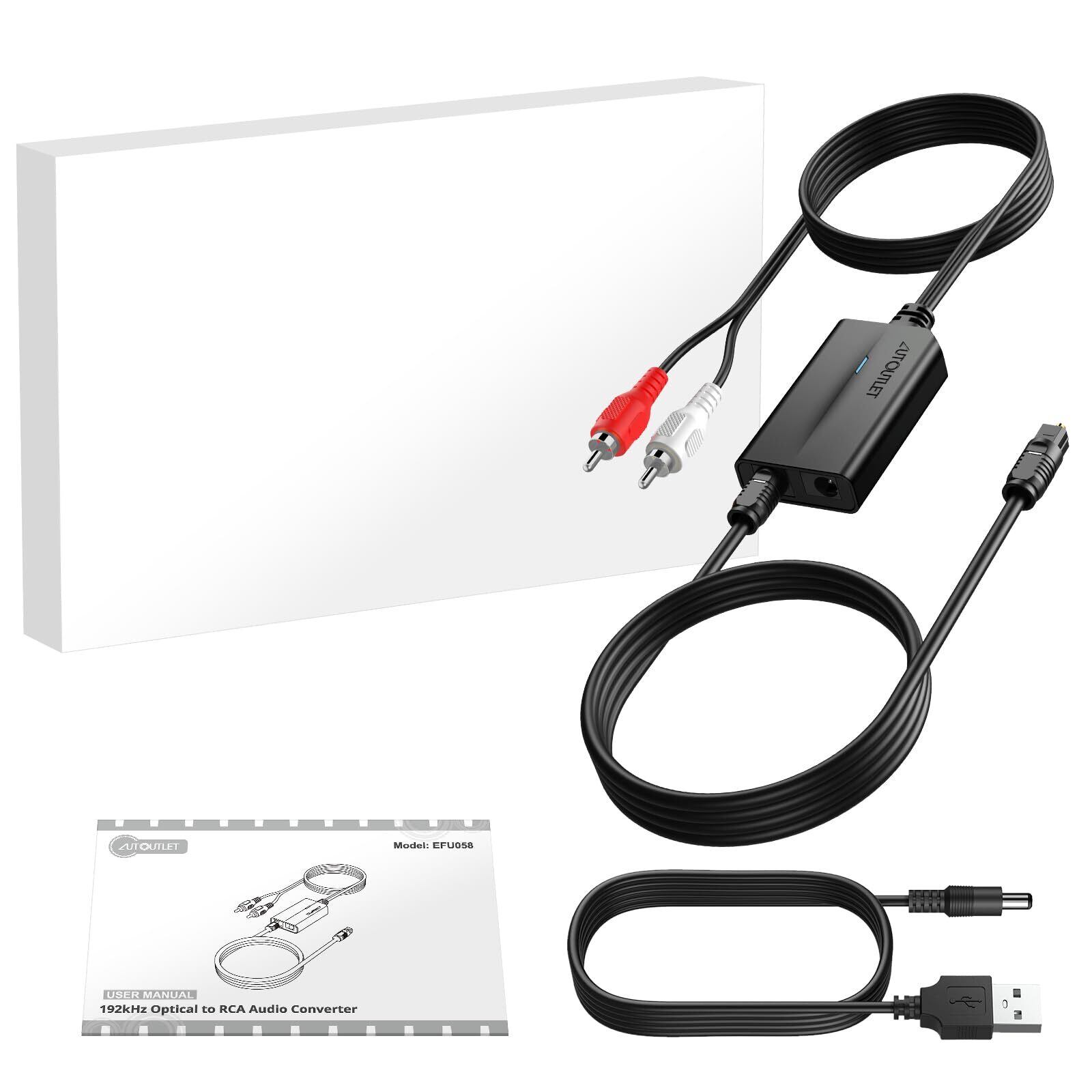AUTOUTLET 192 kHz デジタル アナログ 音声変換器 0.7MRCA オスケーブル+1M 光ケーブル付き 192KHz 光デジタル to RCA 音声変換器 DACコンバーター オーディオ コンバーター 光Toslink-RCA オーディオアダプター USBケーブル付属