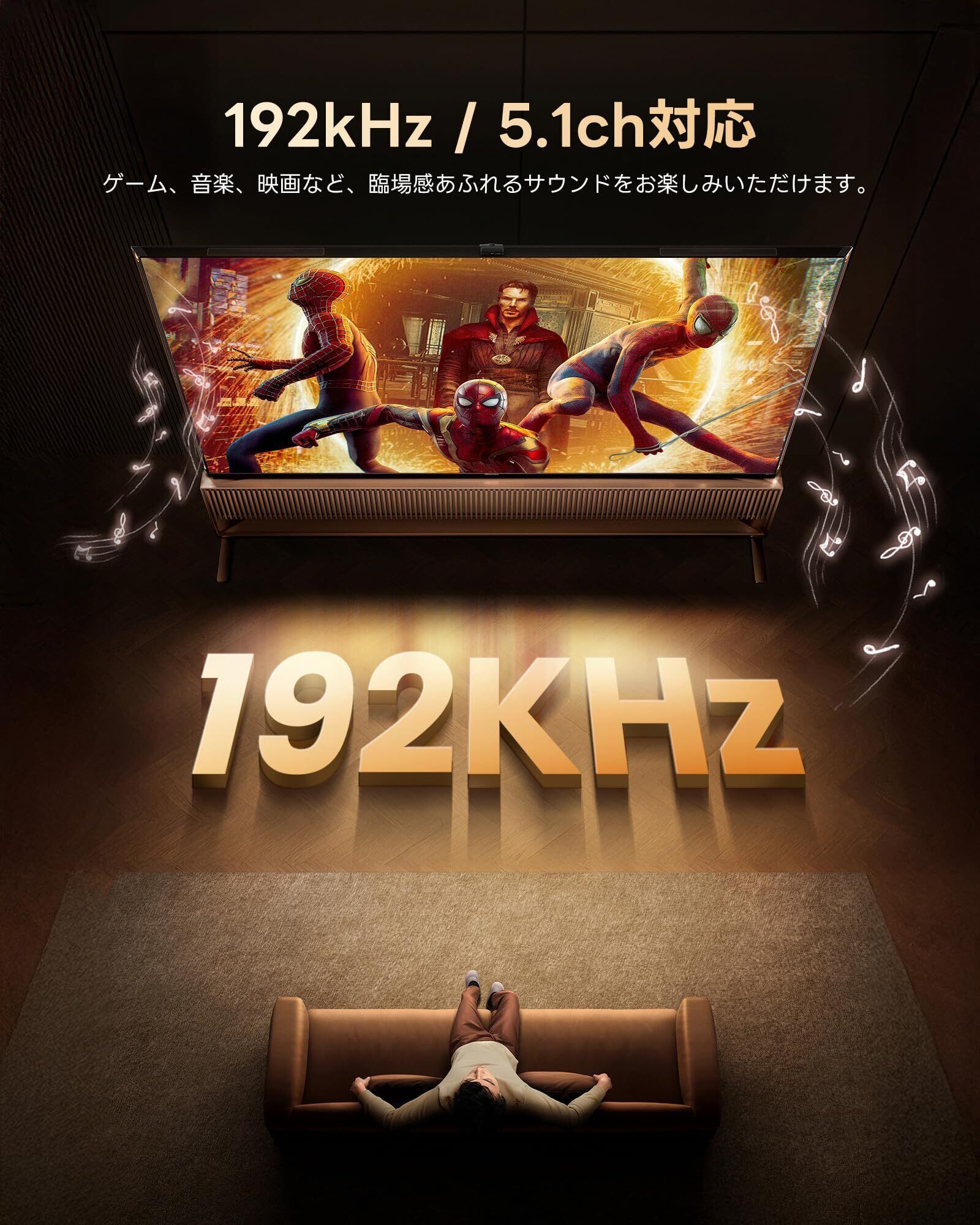 【高音質サンプリングを実現】32/44.1/48/96/192kHzのサンプリングレートに対応し、高解像度で臨場感あふれるサウンドを再現します。光および同軸出力インターフェースは5.1チャンネル伝送をサポートします。