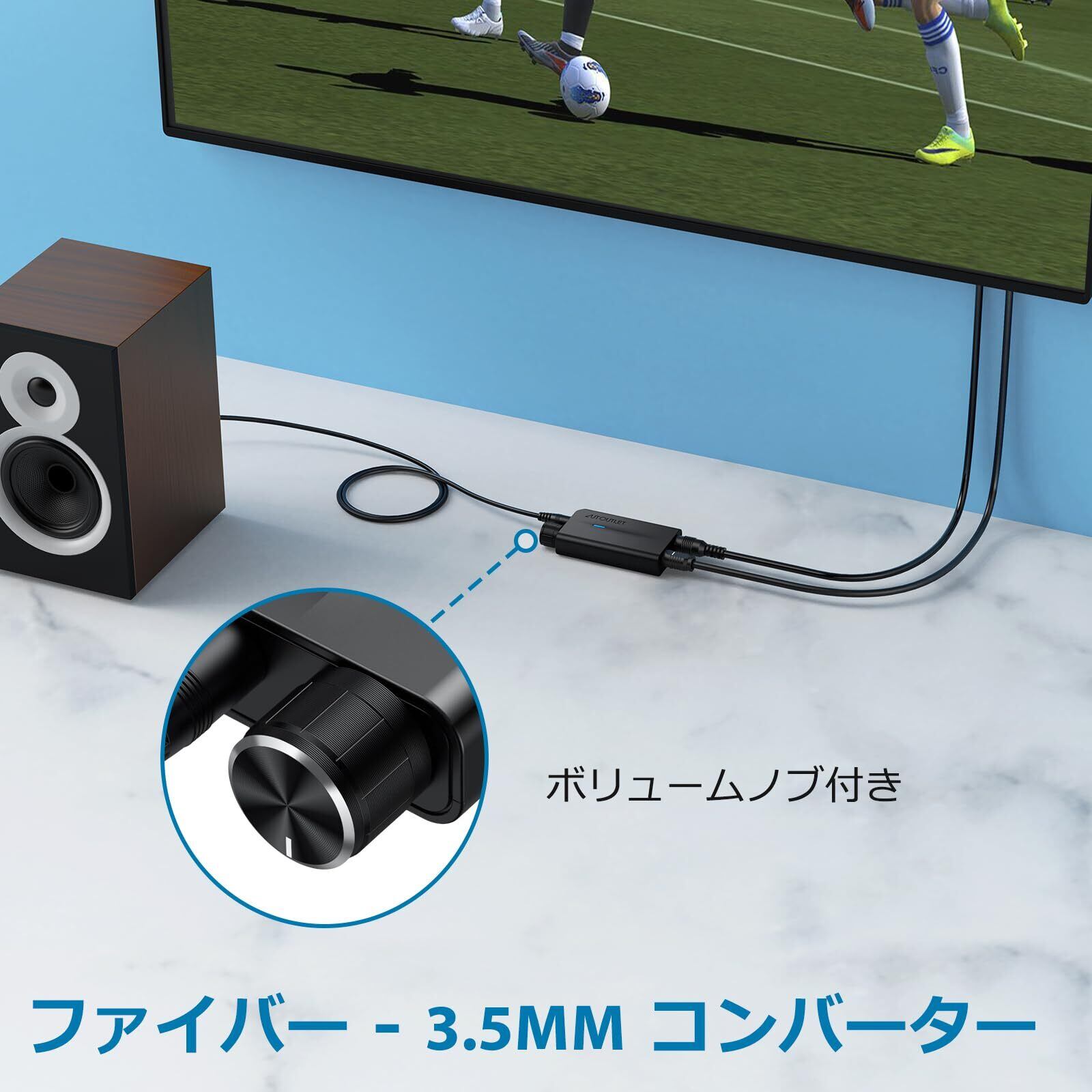 AUTOUTLET 192 kHzデジタルアナログ 音声変換器 1M 3.5mmオーディオケーブル付き 光デジタル to 3.5mm アナログ オーディオ アダプター 音量調整でき DACコンバーター (HDTV、ヘッドフォン、ゲーム コンソール用) USBケーブル付属