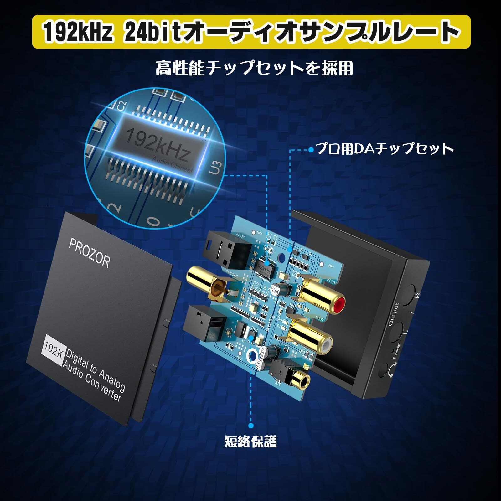 PROZOR 192KHz 光デジタル アナログ変換 コンバーター DAC 3.5mmミニジャック付き PS4 XBox HD DVDなど対応