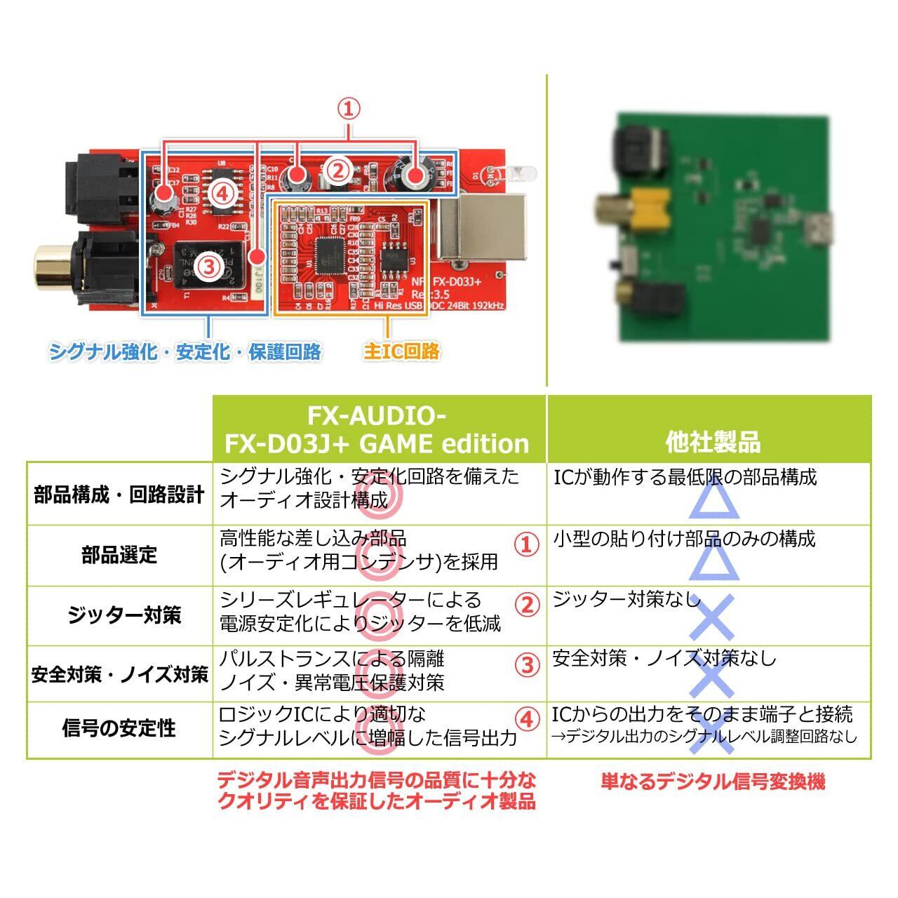 FX-AUDIO- FX-D03J+ GAME edition ゲーム機(PS4/PS5/Nintendo Switch/Switch2)対応USBバスパワー駆動DDC USB接続でOPTICAL・COAXIALデジタル出力を増設 ハイレゾ対応 最大24bit 192kHz 光 オプティカル 同軸