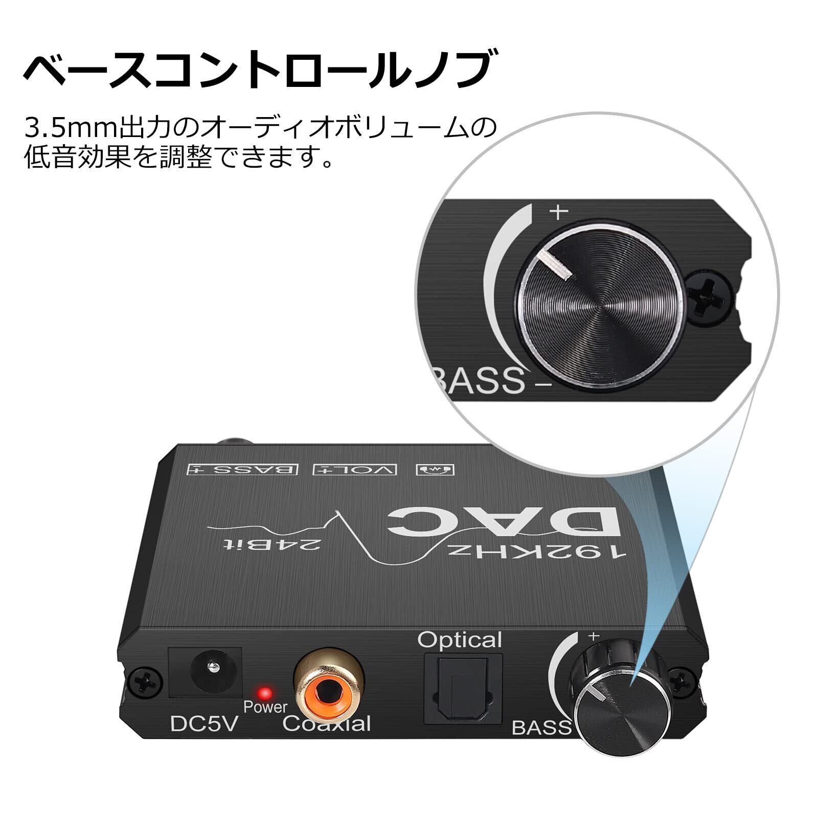 CAMWAY 192kHz デジタル アナログ オーディオ コンバーター 低音調整でき 光デジタル 変換 Toslink/同軸から RCA/3.5mmヘ DAコンバーター ボリュームコントロール 干渉防止 オーディオ アダプター
