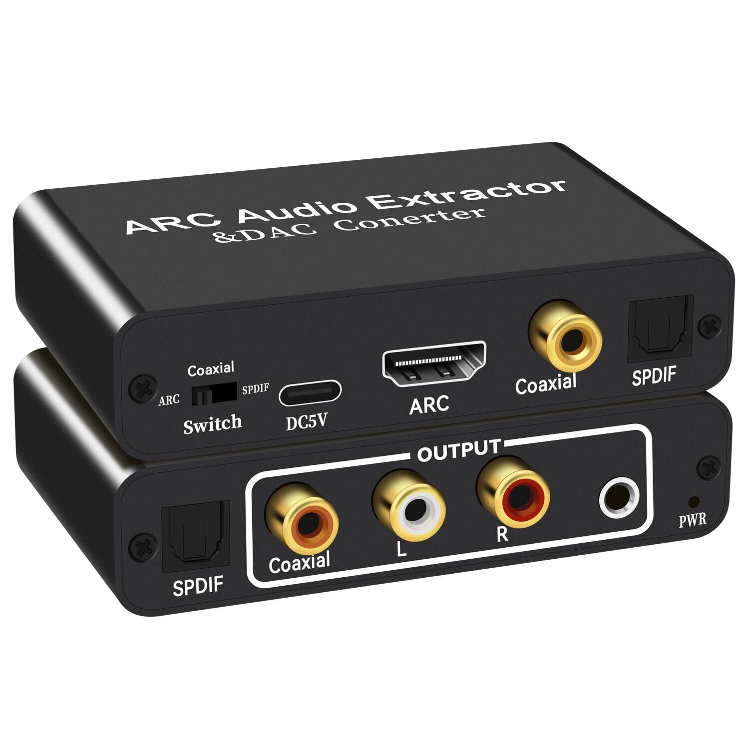 HDMI ARCアダプター Audio Extractor DAC変換器192KHz対応光デジタル/SPDIF+同軸+RCA(L/R)アナログオーディオ+3.5mm AUX出力 CEC機能をサポート 音声分離 DVD テレビ用 サウンドバー/アンプ対応 アルミ製
